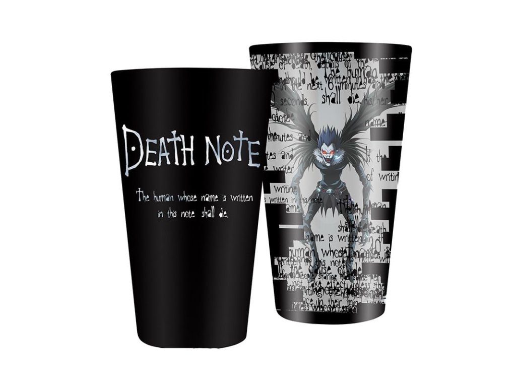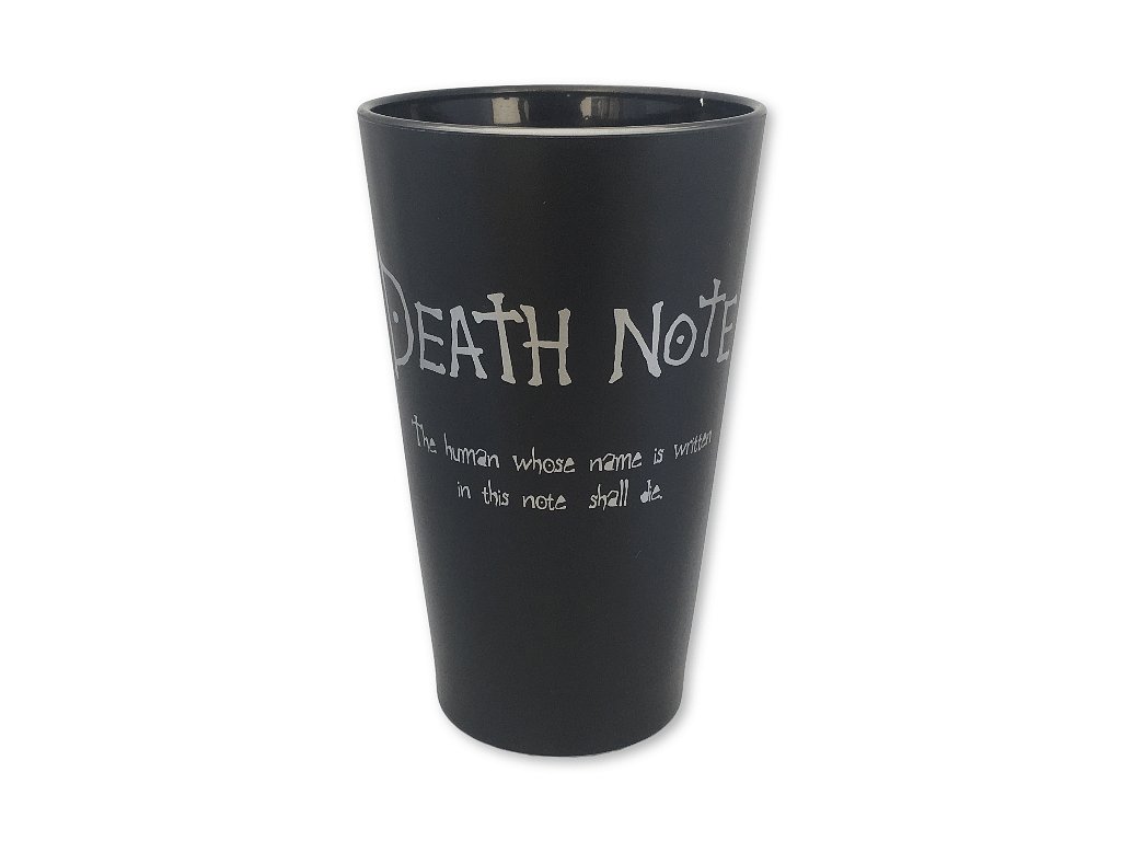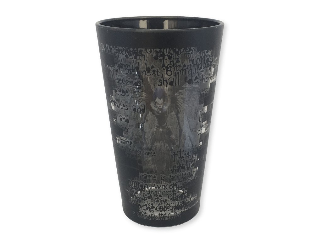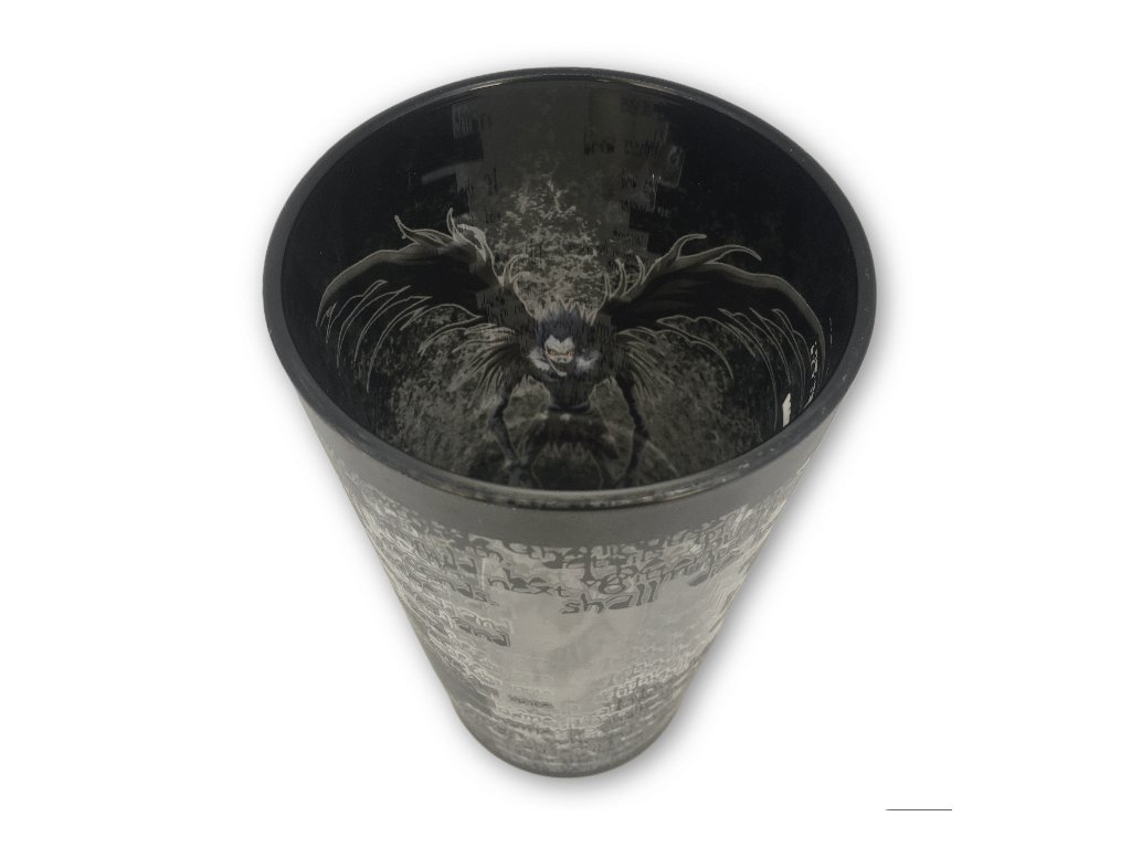 Člověk, jehož jméno je napsáno do zápisníku, zemře. Černá sklenice Death Note, na které je napsáno první a nejslavnější pravidlo Zápisníku smrti. Zároveň ji zdobí detailní, i když trochu znepokojivá ilustrace nejoblíbenějšího shinigamiho Ryuka na vnitřní straně. Ideální dárek pro každého fanouška anime a mangy Death Note. Sklenice je ideální, pokud si chcete vybudovat reputaci ve škole, v kanceláři nebo na novém pracovišti.