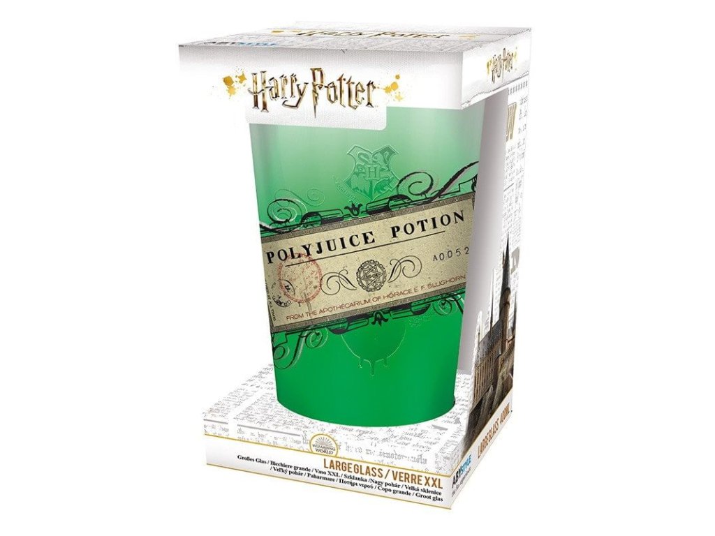 Ať už se chystáte na přeměnu do podoby jiného člověka nebo si zkrátka chcete vychutnat svůj oblíbený nápoj ve stylu Harry Pottera, tato zelená sklenice s grafikou Mnoholičného lektvaru (Polyjuice Potion) vám dopřeje jedinečný zážitek! Sklenice není vhodná do mikrovlnné trouby a myčky nádobí.