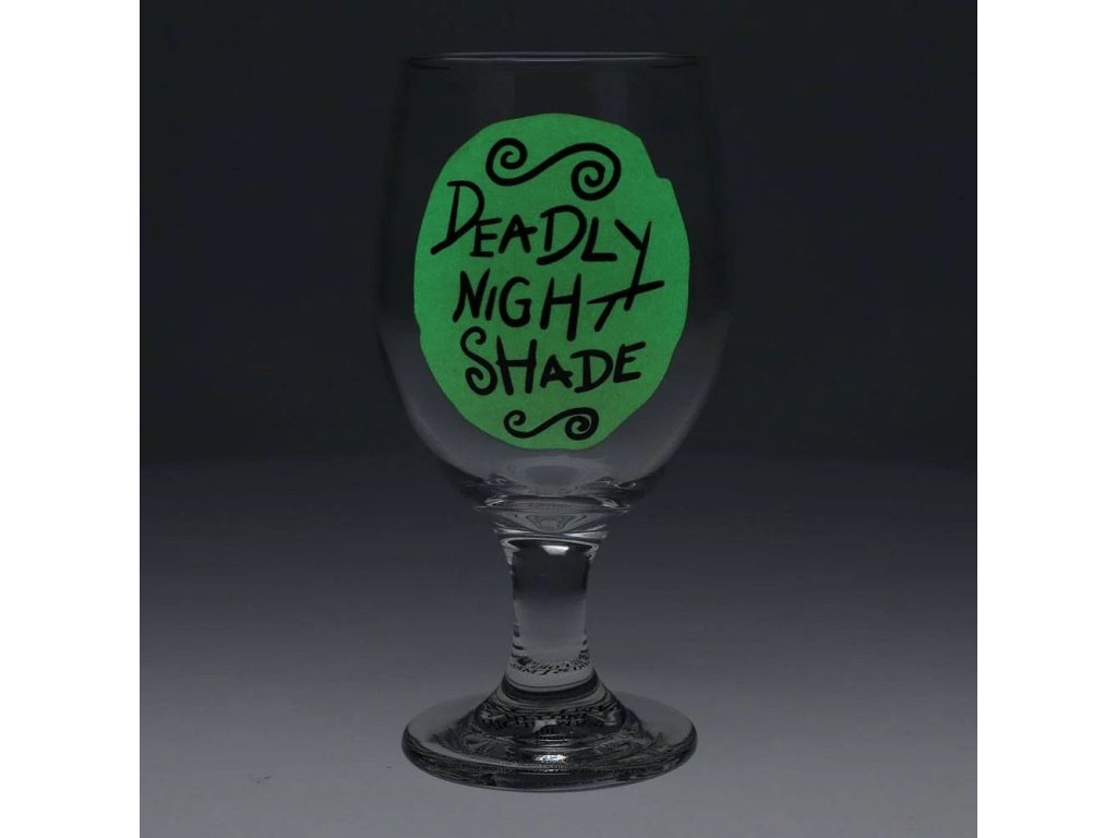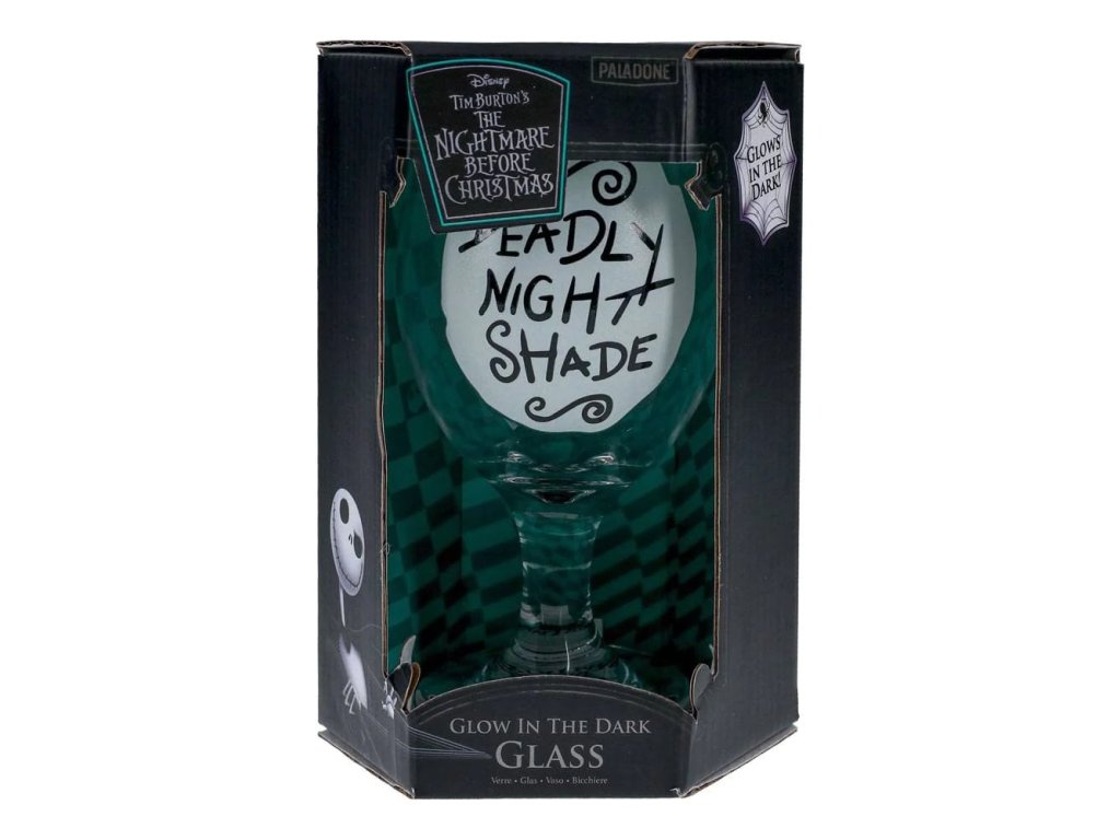 Sklenice s grafikou oblíbeného animáku a hororového muzikálu Ukradené Vánoce (The Nightmare Before Christmas) od Tima Burtona svítící ve tmě. Sklenice není vhodná do mikrovlnky a myčky nádobí.