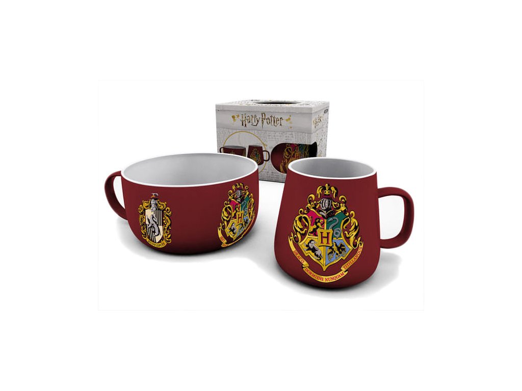 Snídaně je nejdůležitějším jídlem dne a s touto dárkovou sadou si ji budete moci připravit zvlášť vydatnou díky objemné misce a hrnku s erby Bradavické školy (Hogwarts) a jejích kolejí z knih a filmů o slavném kouzelnickém učni Harrym Potterovi. Než začnete kouzlit, pochutnejte si z misky například na zdravé kaši a upíjejte z hrnečku váš oblíbený čaj. Nádobí není vhodné do mikrovlnné trouby ani do myčky nádobí.