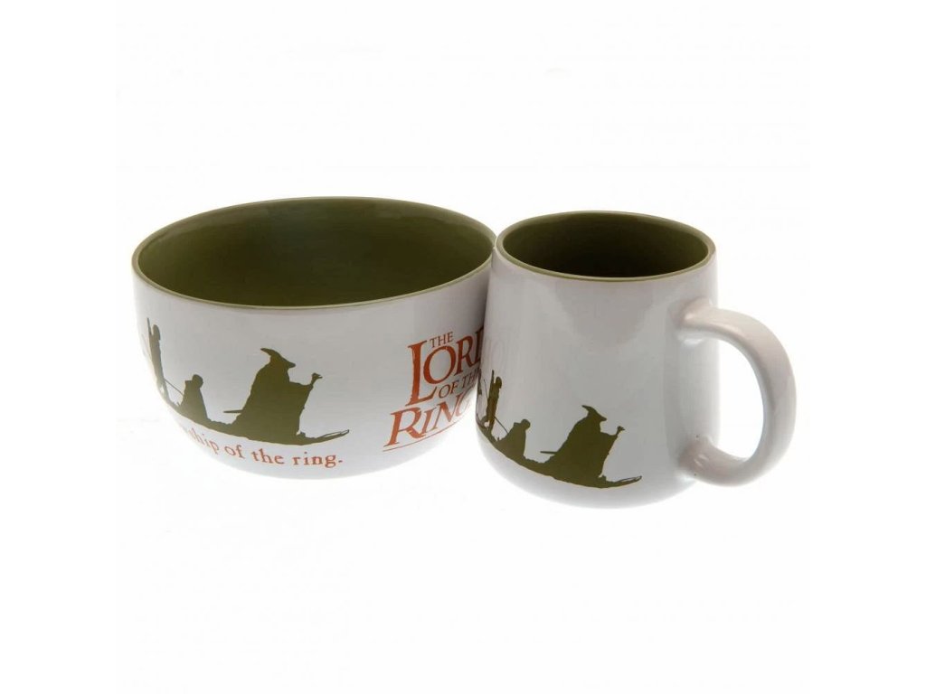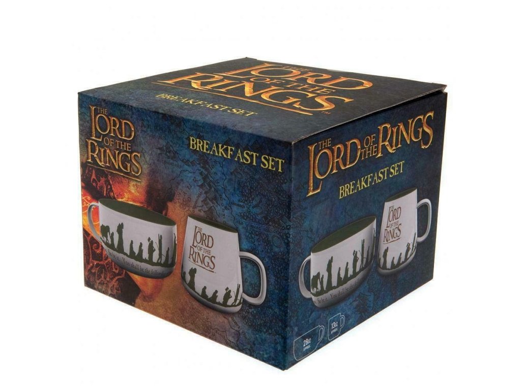 Dejte si snídani spolu s hrdiny ze Středozemě! Hezká snídaňová sada obsahuje hrnek a misku se siluetami putujícího Společenstva z fantasy trilogie Pán prstenů. Skvělý dárek pro fanoušky díla J. R. R. Tolkiena! Hrnek ani miska nejsou vhodné k použití v mikrovlnné troubě ani myčce nádobí.