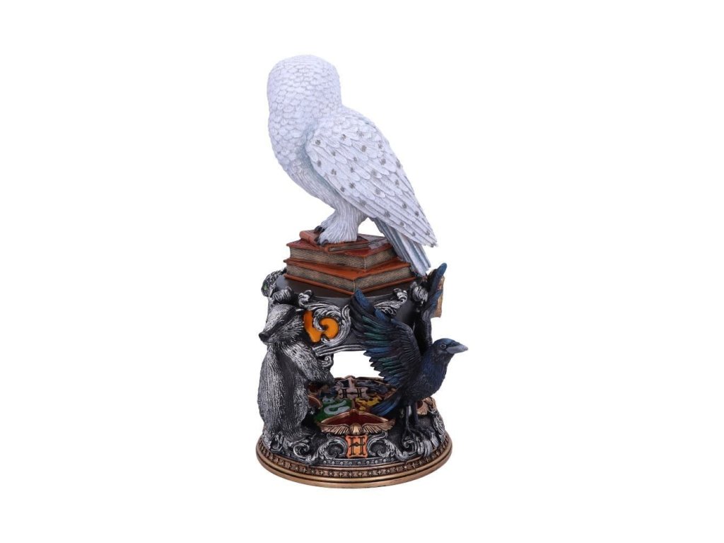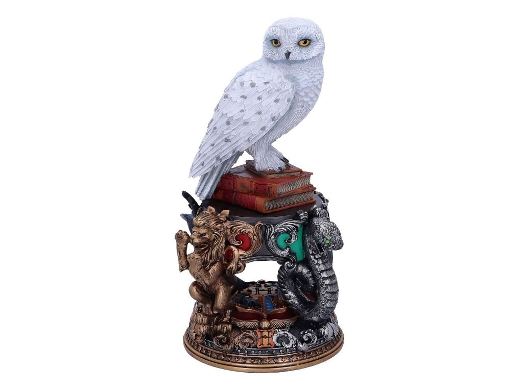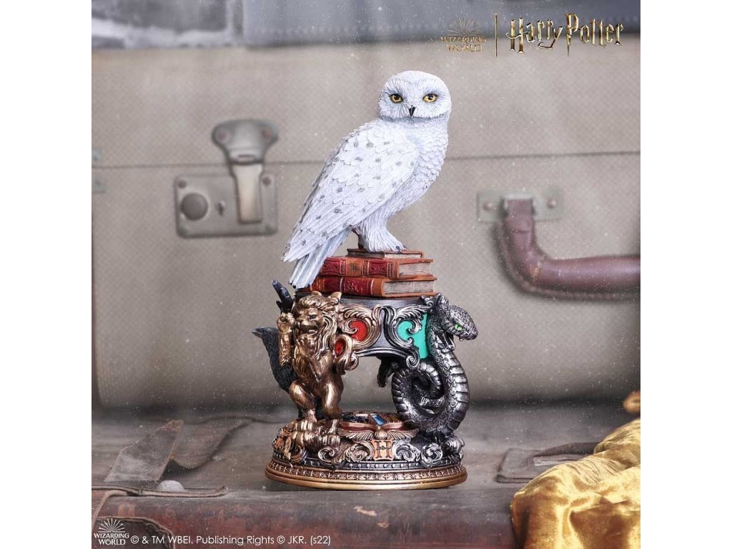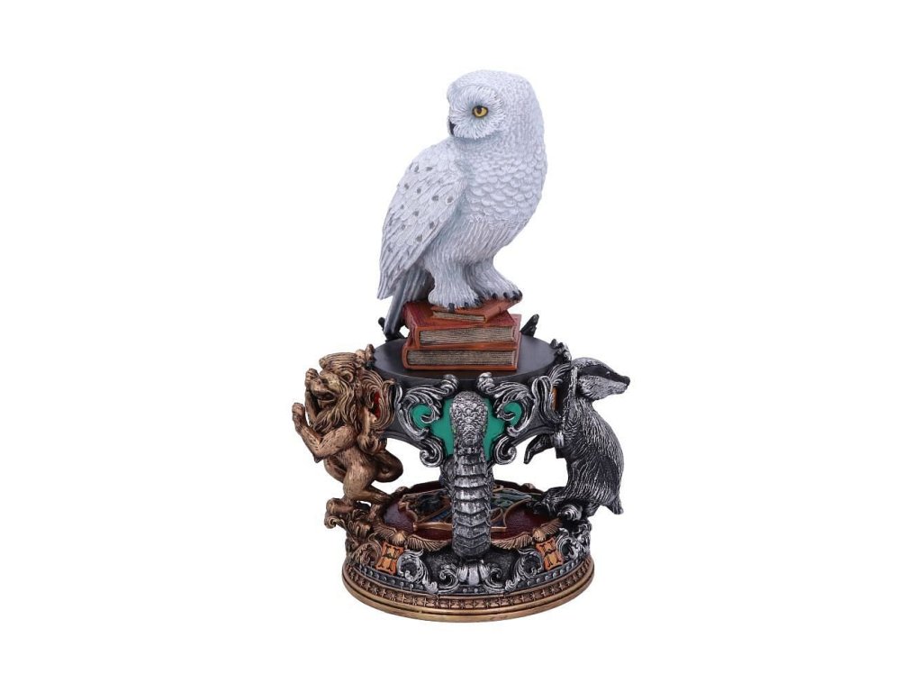 Krásná soška sovy Hedviky, věrné opeřené kamarádky Harry Pottera, se hodí do knihovny i na pracovní stůl. Soška stojí na knihách podpíraných zvířecími patrony čtveřice bradavických kolejí. Originální dárek pro fanoušky magických příběhů ze světa J. K. Rowlingové!
