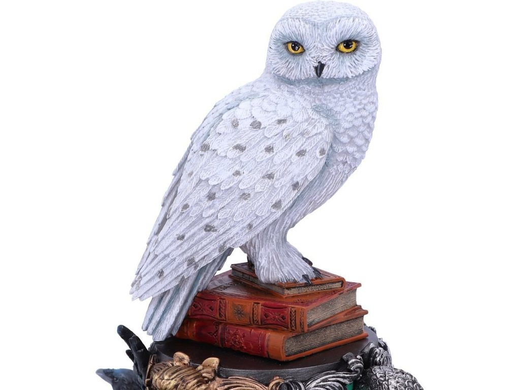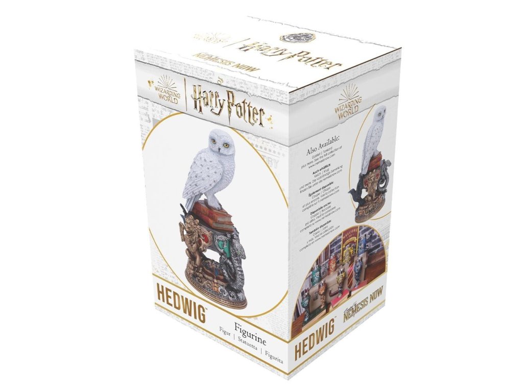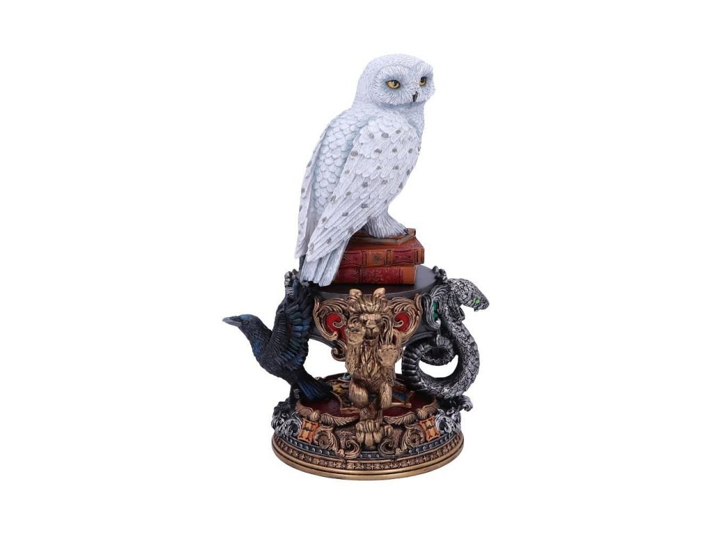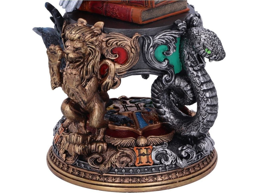 Krásná soška sovy Hedviky, věrné opeřené kamarádky Harry Pottera, se hodí do knihovny i na pracovní stůl. Soška stojí na knihách podpíraných zvířecími patrony čtveřice bradavických kolejí. Originální dárek pro fanoušky magických příběhů ze světa J. K. Rowlingové!