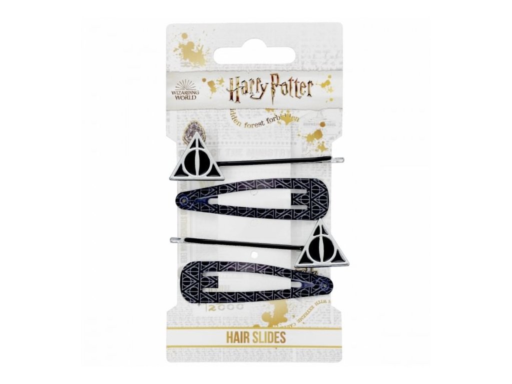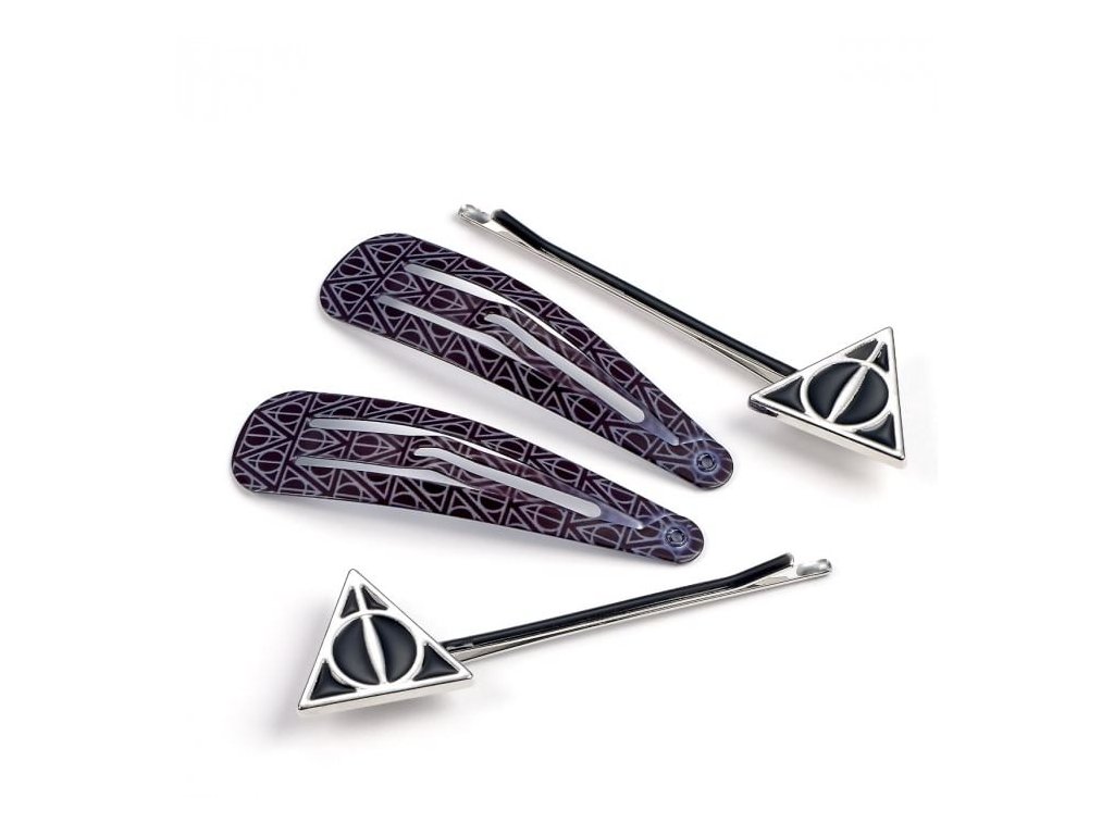 Sada obsahuje dva páry slušivých sponky do vlasů se smyboly Relikvií smrti, známých z příběhů o Harry Potterovi z Bradavic. Skvělý dárek pro fanoušky, který se hodí k oblečení i ke kostýmu.