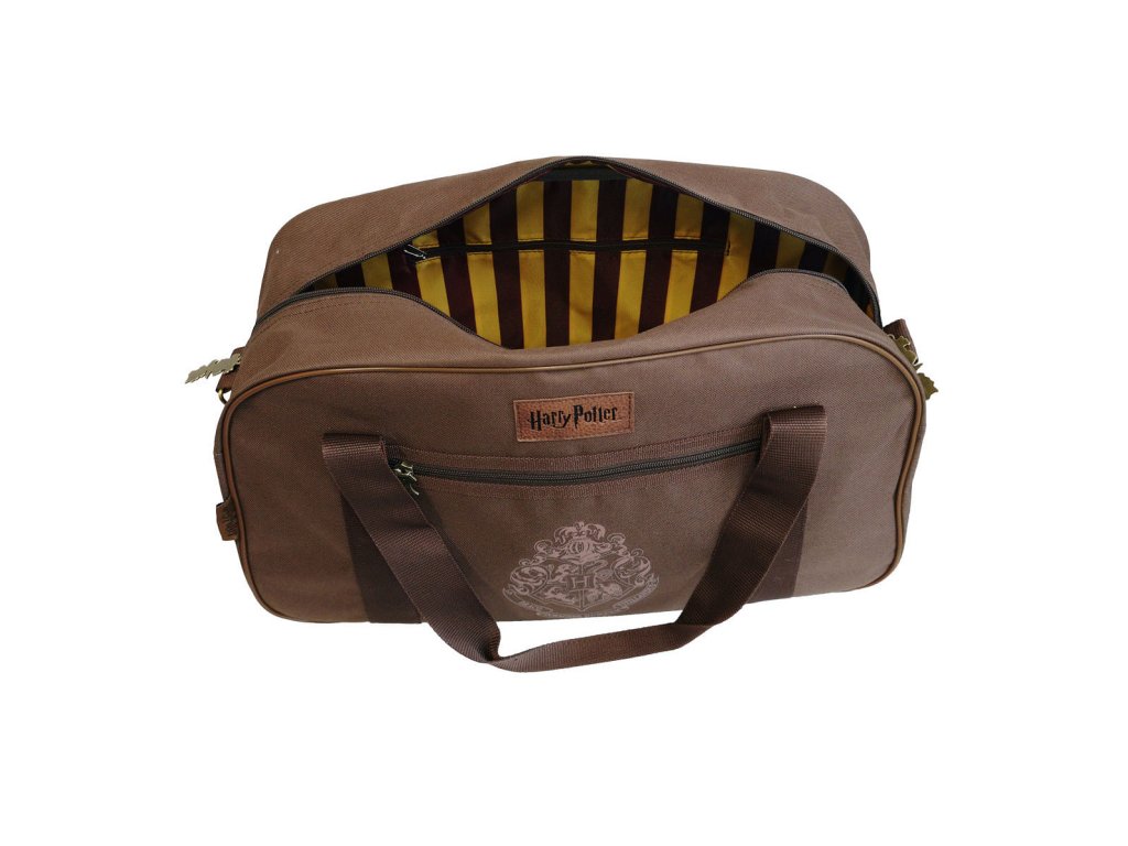 Sportovní a přesto elegantní taška Harry Potter se znakem Bradavické školy čar a kouzel. Taška má velký úložný prostor a přední menší kapsu, obojí na zip. Dále jsou součástí uši na nošení v ruce a nastavitelný popruh přes rameno, který se dá sundat. Přední a zadní strana jsou vyrobené z koženky.