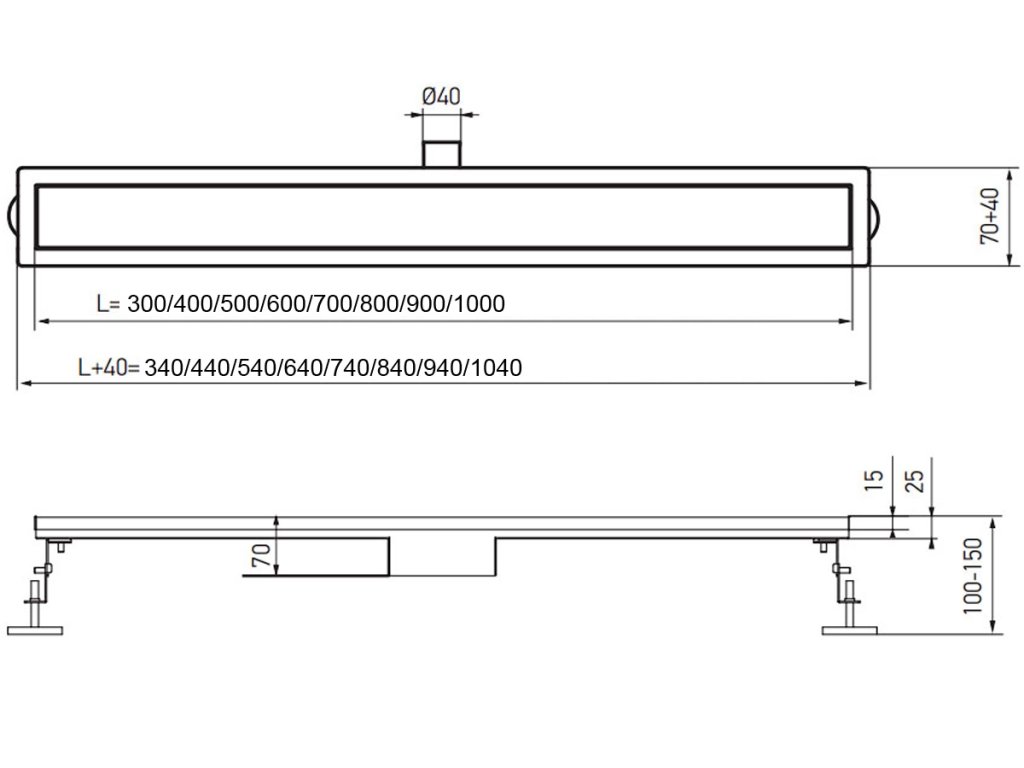 Sprchový žlab, FD30-70x550 | FD30-70×550