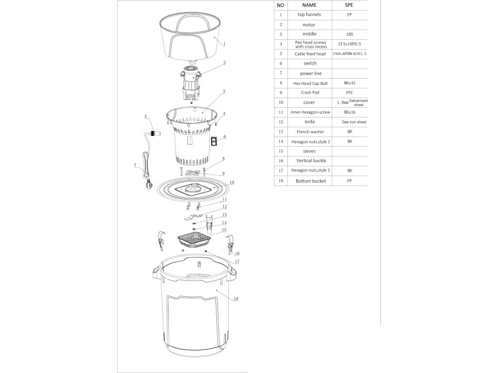 Šrotovník je dodáván s 5 síty o velikostech 2, 3, 4, 6 a 8 mm, což umožňuje přizpůsobit mletí různým druhům krmiva a požadované hrubosti.