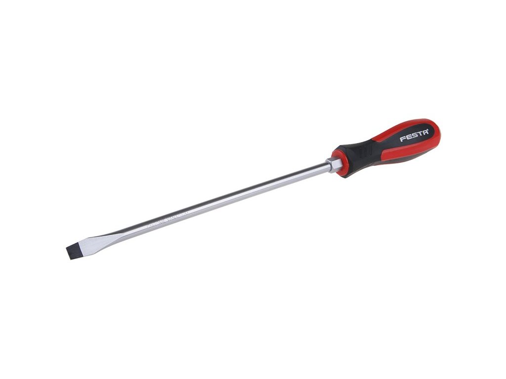 Kovový dřík šroubováku FESTA je vyroben z kvalitní chromvanadiové oceli, kalený hrot je magnetický, dřík šroubováku je pevně spojen s úderovou koncovkou, u rukojeti je šestihran pro použití klíče, kombinace polypropylenu a pryže na rukojeti a její ergonomický tvar zaručuje dobré antiskluzové vlastnosti a dobrou odolnost vůči mazadlům a chemikáliím.