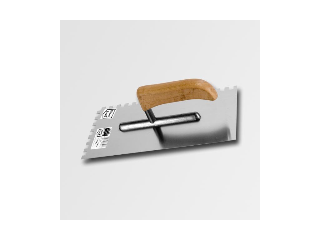 Hladítko nerezové 130x270mm, rukojeť dřevěná, zub 10x10 0418