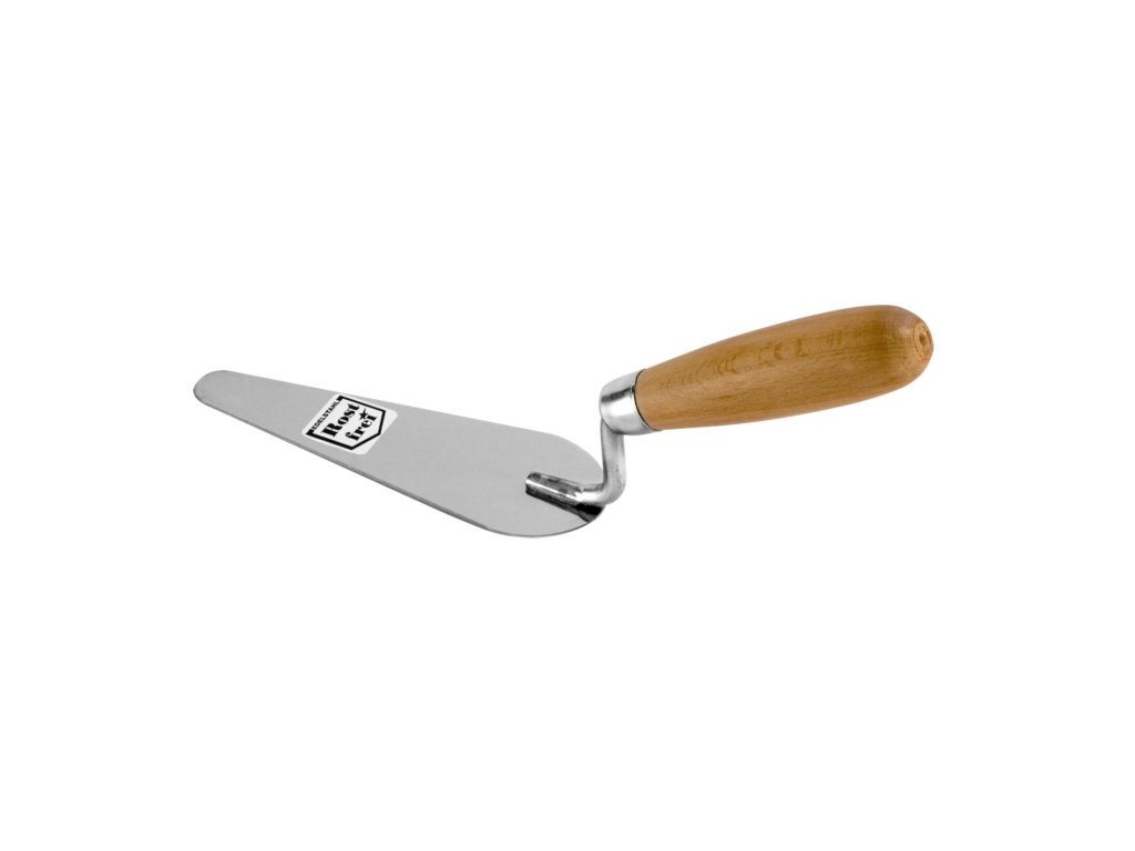 Zednická lžíce pro dokončovací práce, dřevěná rukojeť.
