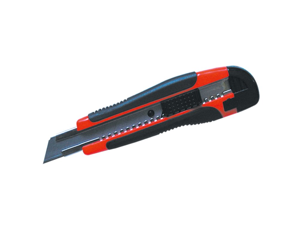 Pogumovaný ulamovací nůž s kovovou vodící lištou.