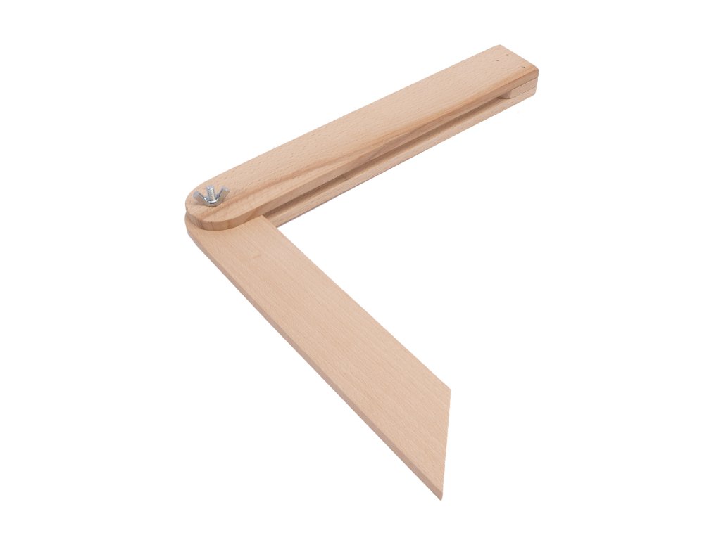 Nastavitelný dřevěný pokosník slouží k přesnému přenášení a nastavování úhlů. Díky aretačnímu šroubu lze úhel snadno a přesně zafixovat podle potřeby. Praktický pomocník pro značení pokosových řezů, opracování hran a úhlového spojování materiálů.