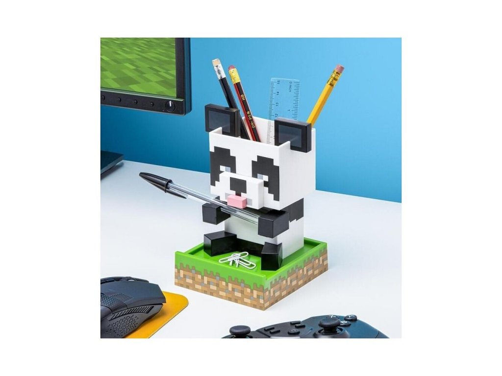 Originální držák na tužky, kancelářské potřeby a další drobnosti má podobu kostičkové pandy z populární videohry Minecraft. Pěkný praktický dárek pro malé i velké hráče.