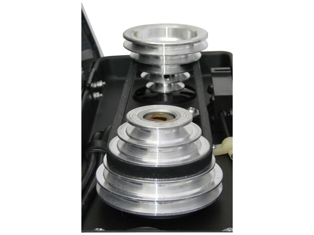 5 rychlostních stupňů otáčení vřetena (580/850/1.220/1.650/2.650/min). Manuální nastavení pomocí řemenic,