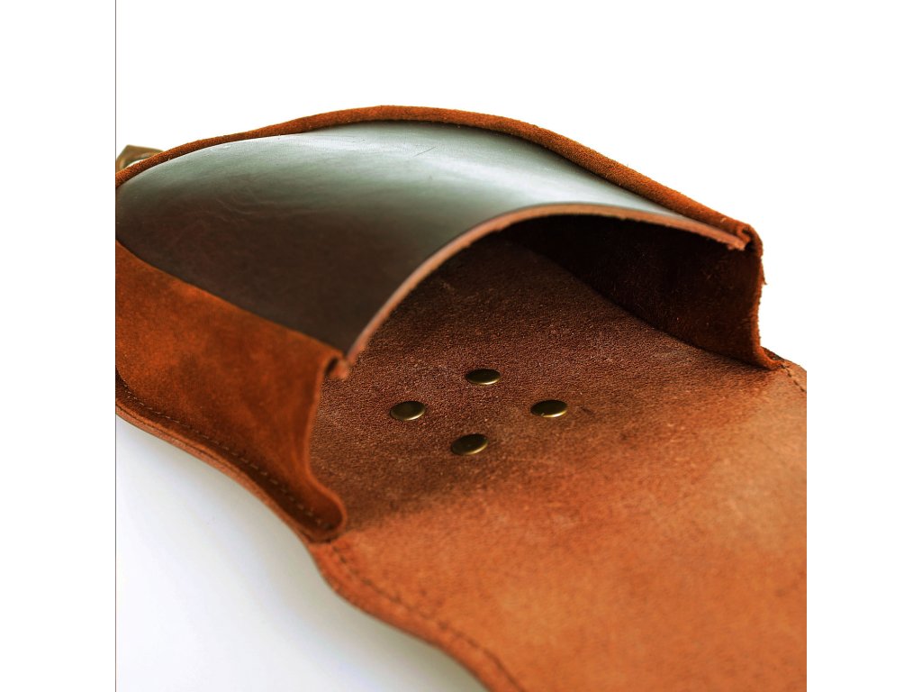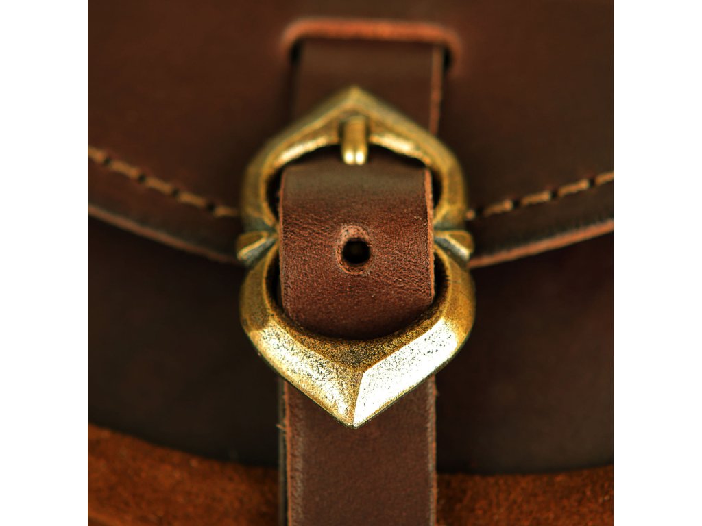 Kožená taštice volně inspirovaná historickou předlohou je určená k nošení na opasku. proti otevření je zajištěna elegantním zapínáním s přezkou. Díky svým rozměrům pojme spoustu drobností, hodí se k libovolnému fantasy či historickému kostýmu. Taštici vyrábíme ručně v naší sedlářské dílně z kvalitní hovězí kůže tloušťky 2 mm, k mání je v černé nebo hnědé povrchové úpravě.