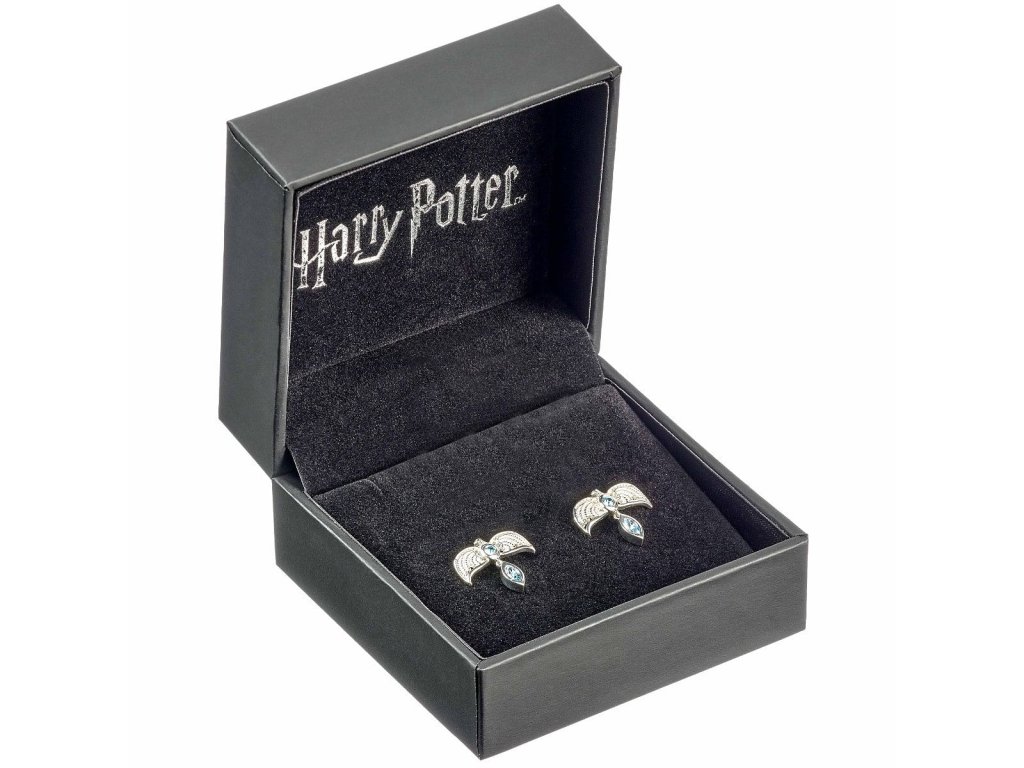 Slušivé stříbrné náušnice v podobě diadému Roweny Ravenclaw, skotské čarodějky a zakladatelky koleje Havraspár na bradavické škole čar a kouzel. Náušnice jsou osázeny modrými krystaly a budou slušet všem fanynkám magického světa Harry Pottera a jeho přátel! Pár náušnic je dodáván v dárkové krabičce (7 x 7 x 4,2 cm).