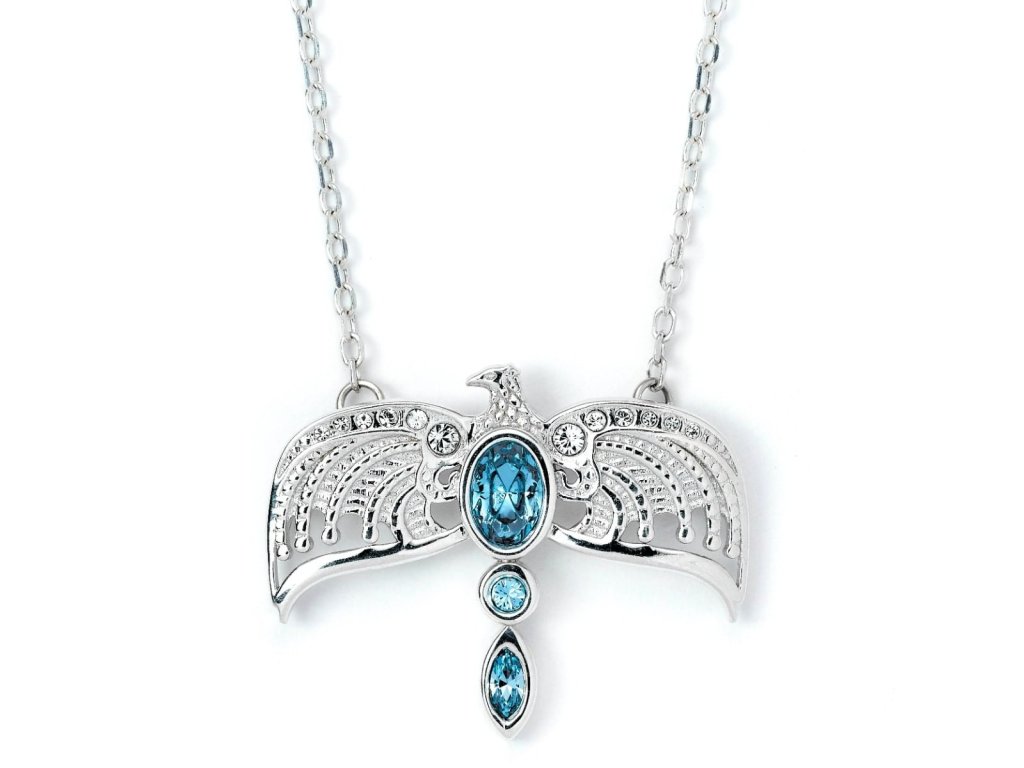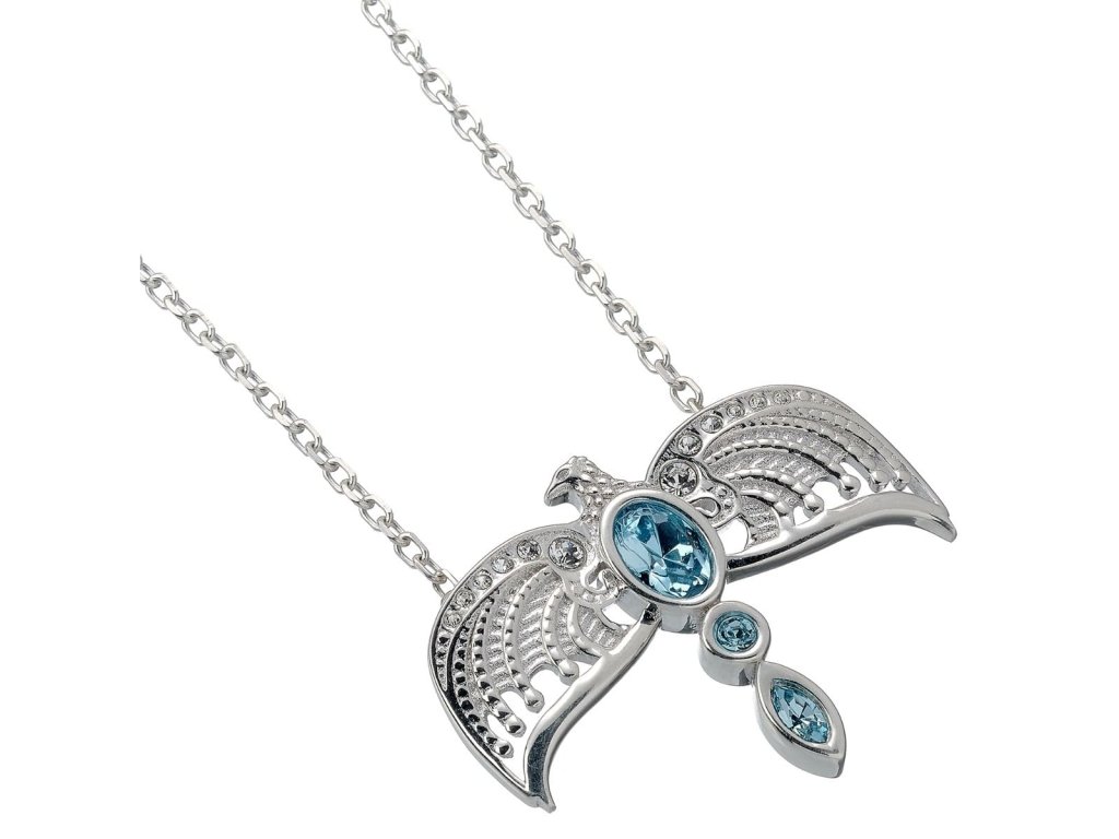 Krásný stříbrný náhrdelník s přívěskem v podobě diadému Roweny z Havraspáru je osázený modrými krystaly a bude slušet fanynkám i fanouškům Harry Pottera. Rozměry přívěsku: 2,8 x 2,2 cm. Délka stříbrného řetízku je cca 44 cm.