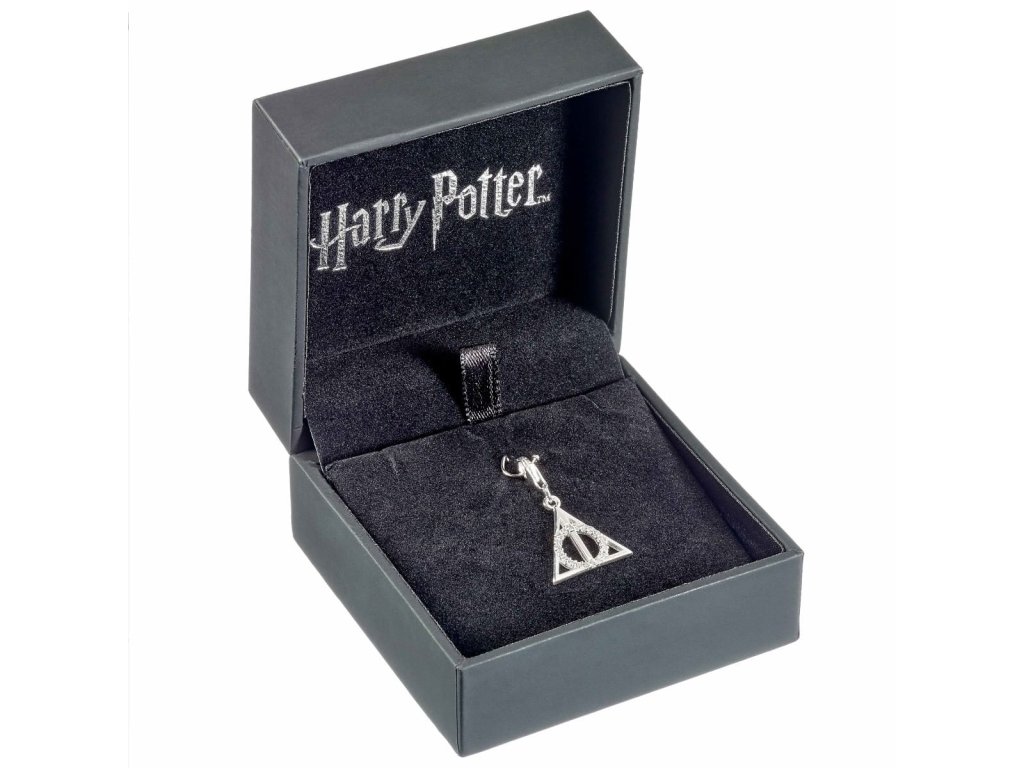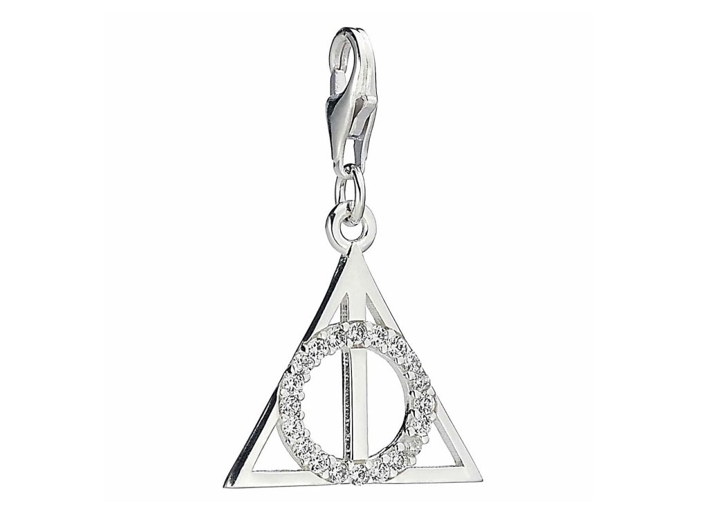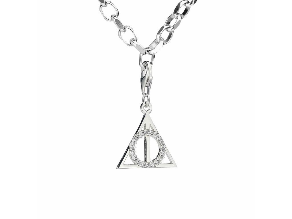 Krásný stříbrný přívěsek s krystaly má podobu symbolu Relikvií smrti z knih a filmů o Harry Potterovi. Skvělá ozdoba pro fanynky i fanoušky! Přívěsek se připíná pomocí klipu. Šperk můžete nosit samostatně nebo spolu s dalšími přívěsky a korálky na náramku či náhrdelníku. Přívěsek je dodáván v dárkové krabičce. Řetízek není součástí balení.