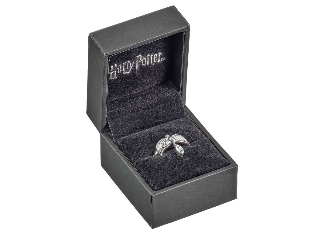 Nádherný stříbrný prsten s krystaly v podobě diadému Roweny z Havraspáru udělá radost fanynkám a fanouškům knih a filmů o Harry Potterovy. Prsten je dodáván v originální dárkové krabičce. Velikosti: S - vnitřní průměr 15,5 mm M - vnitřní průměr 17 mm L - vnitřní průměr 18,5 mm