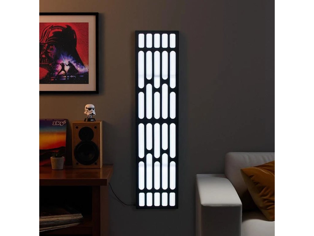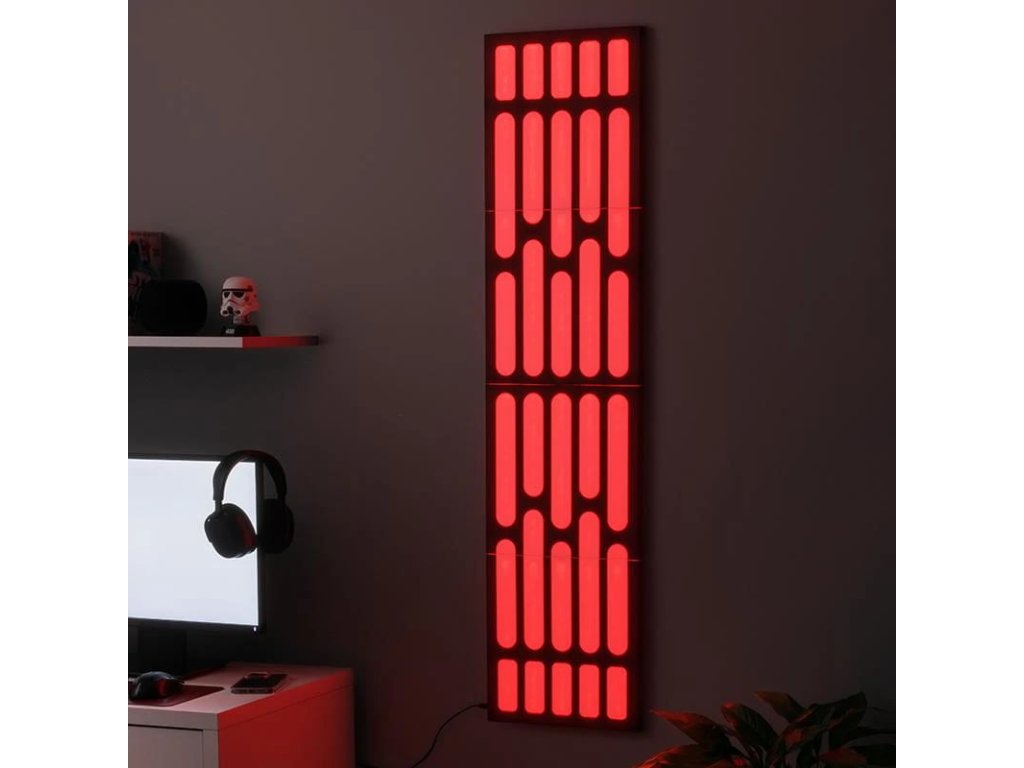Tvůj pokoj už nebude nikdy jako dřív! Se světelným nástěnným panelem Star Wars se přemístíš na chodby Hvězdy smrti do společnosti hlídek Stormtrooprů a Darth Vadera, který se bezpochyby skrývá za nejbližším rohem. Tato výjimečná dekorace má svůj vlastní příběh. Je výsledkem spolupráce mezi kreativními mozky Entertainment Earth a Paladone. Jejich týmy inženýrů a designérů neúnavně pracovaly na oživení této ikonické části vesmíru Star Wars - chodby nechvalně známé Death Star (Hvězdy smrti) - dokud si nebyly jisty každým detailem. Světelné efekty můžeš pohodlně řídit pomocí dálkového ovladače, panel také reaguje na hudbu změnou barevných odstínů - bílého a červeného světla. Dopřej svému pokoji tuto zcela novou unikátní atmosféru. Výška panelu je 124 cm, součástí je napájecí USB kabel k připojení ke zdroji. Panel se nezapojuje přímo do sítě - mrkni na návod (PDF).
