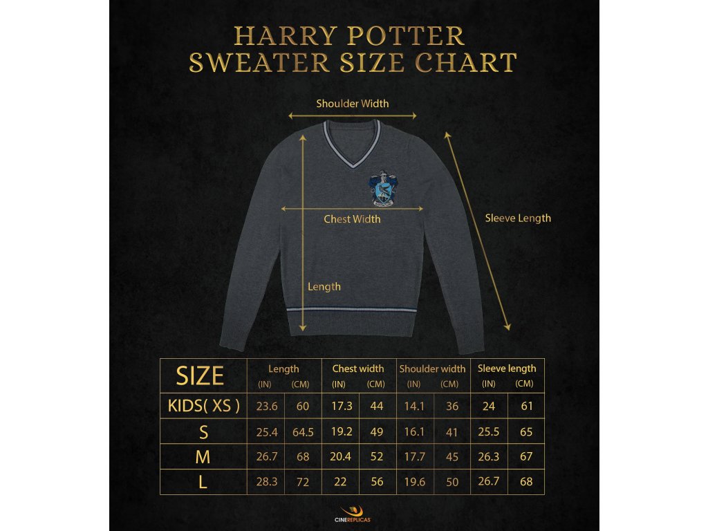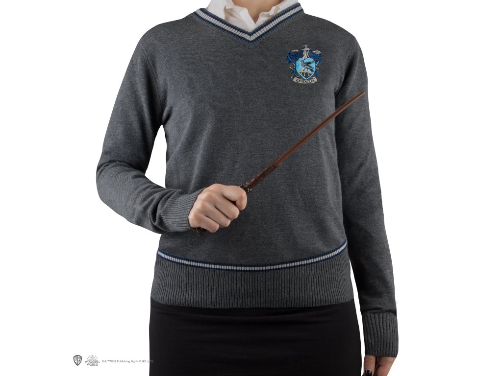Pletený svetr šedé barvy s barevným znakem Havraspáru z knihy a filmů o Harrym Potterovi, jedné z kolejí na bradavické škole čar a kouzel, se hodí kostýmu i na běžné nošení. Velikost XS je dětská.