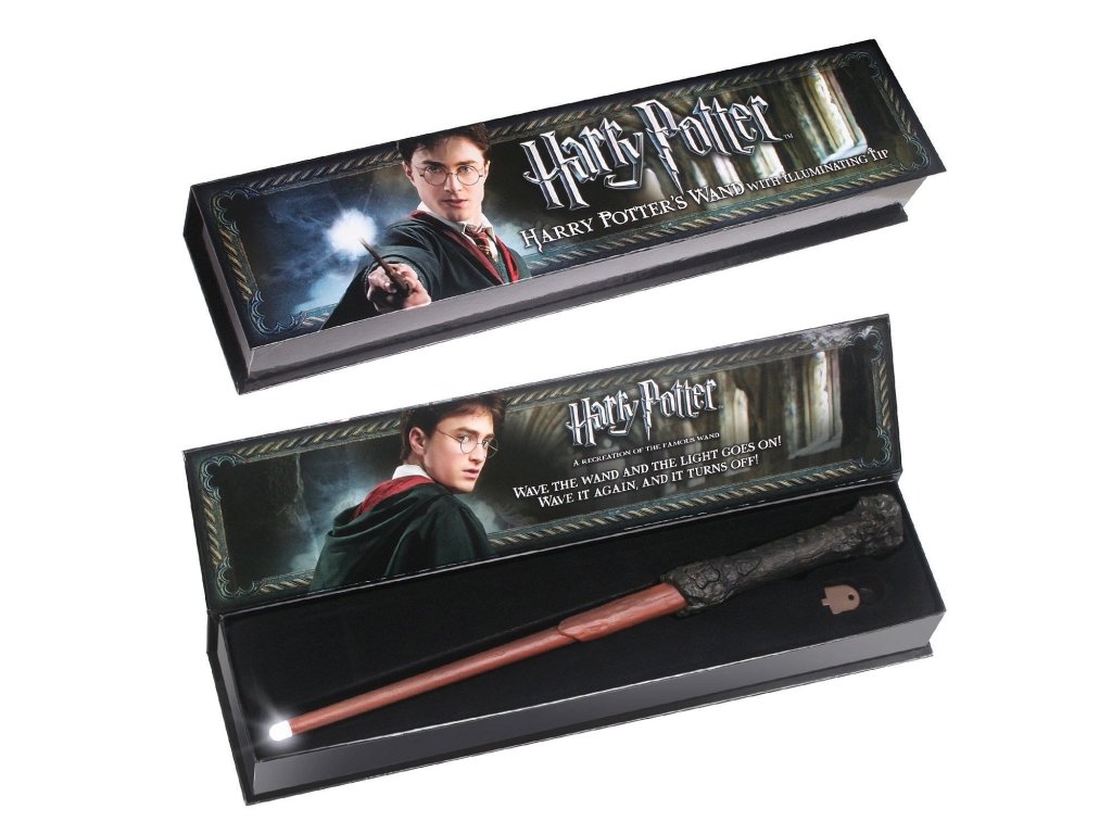 Lumos! Replika Harryho hůlky z filmů Harry Potter. Při mávnutí hůlkou se její konec rozsvítí, při dalším mávnutí pak zhasne. Na boku hůlky je nenápadné tlačítko pro změnu intenzity světla. Hůlka je vyrobená z plastu, světlo je napájeno dvěma AAA bateriemi (nejsou součástí balení), dodáváme ji ve stylové krabičce. Odkazy videorecenze (anglicky)