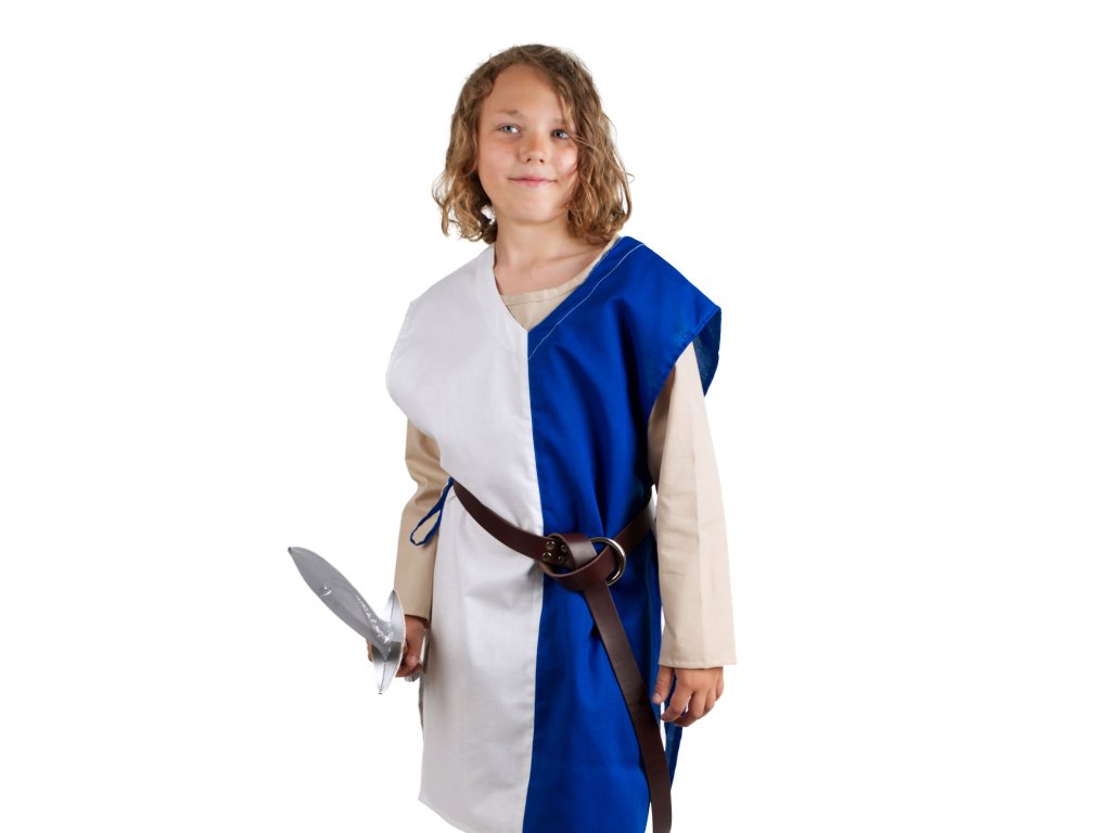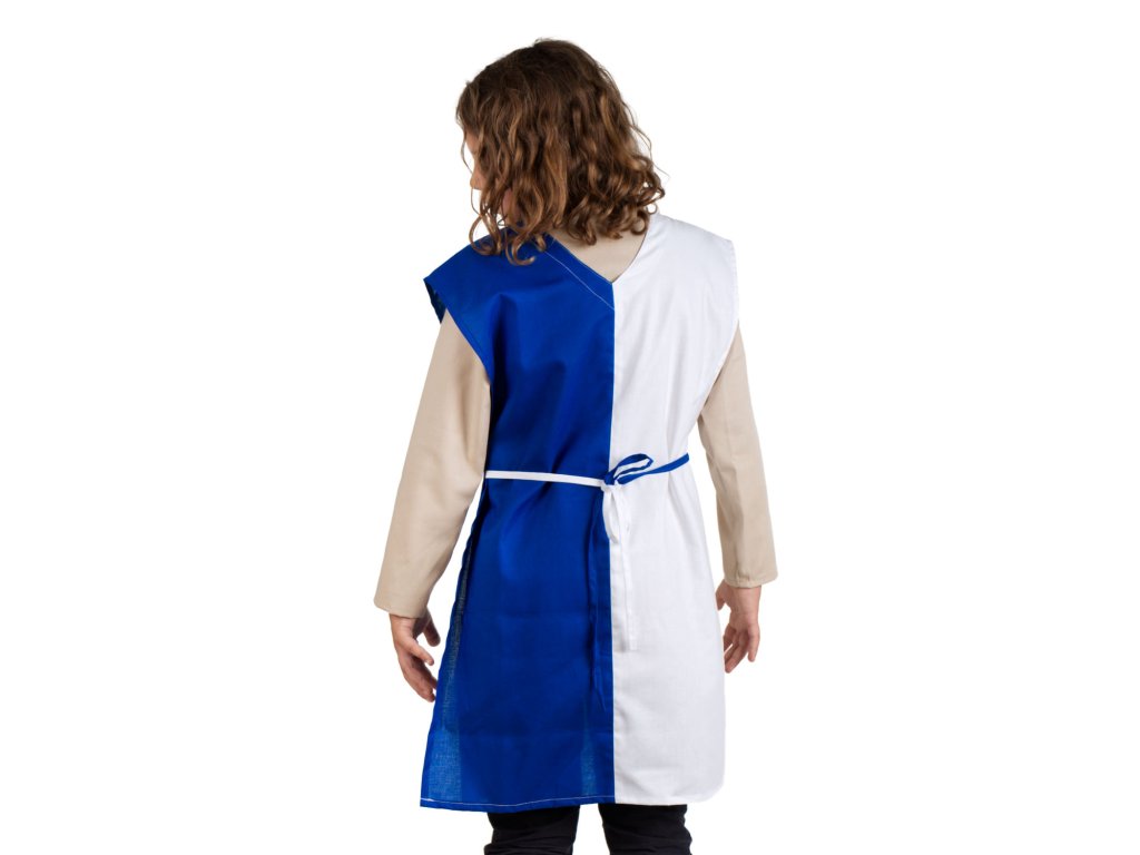 Chystá se vaše dítko na letní tábor, karneval či maškarní? Vylaďte jeho kostým k dokonalosti! Tabard se používal již ve středověku. Nosili jej nejen mušketýři, pěší vojáci, ale také rolníci a mniši. Tabard pro děti tak představuje základní pilíř historického kostýmu, který pak můžete vyšperkovat podle svého gusta. Dětský tabard je ušitý ze 100% bavlny jako volná tunika, která je po stranách otevřená. Stačí si ho obléct přes hlavu, svázat šňůrkami, které nabízejí vícero variant k zavazování, a může vaše ratolest vyrazit na karneval, do bitvy nebo na zmrzku. Tabard pro děti je stejný z přední i zadní strany, v případě nějakého nechtěného ušpinění, třeba od té zmrzliny, stačí tabard otočit. Naše švadlenky myslely opravdu na všechno. Nevyhovuje vám modro-bílá barevná kombinace? Mrkněte na další dvě barevné varianty, které pro vás máme: červeno-černá, béžovo-zelená.