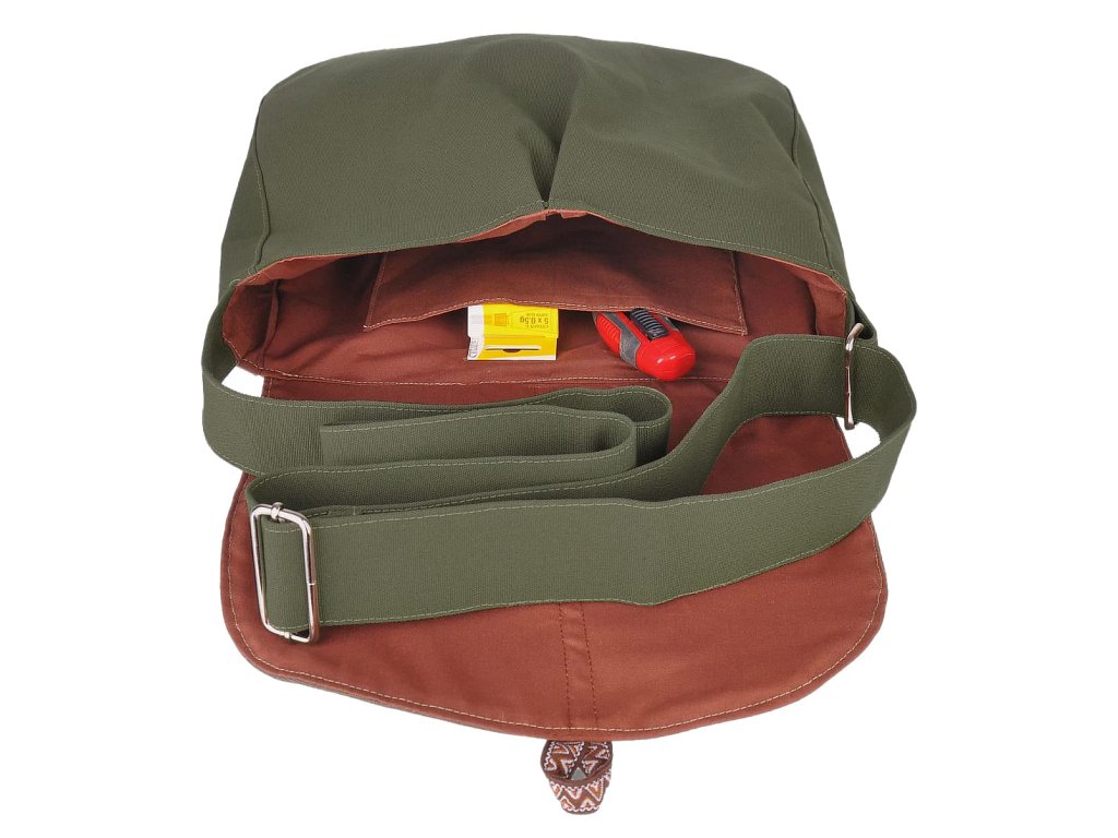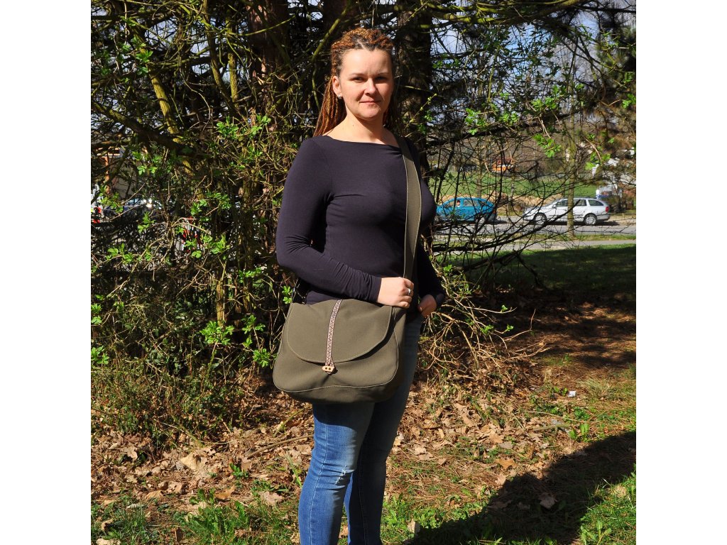 Plátěná nepromokavá taška přes rameno pro bezstarostné výlety za každého počasí. Odolá větru, dešti i špatné náladě. Svým jednoduchým, přírodním vzhledem a zapínáním na dřevěný knoflík potěší oko každého dobrosrdečného poutníka. O pohodlné nošení se postará nastavitelný popruh opatřený kvalitní kovovou sponou. Svrchní část tašky je ušita z hrubého plátna (490g/m), které je navíc opatřeno voděodolnou impregnací. Vnitřní podšívka je ušita z lehké bavlny. Drobnosti jako jsou klíče, milostný dopis, peněženka či mobilní telefon si můžete odložit do vnitřní menší kapsičky. Více o použitém materiálu se dočtete zde: popis materiálů