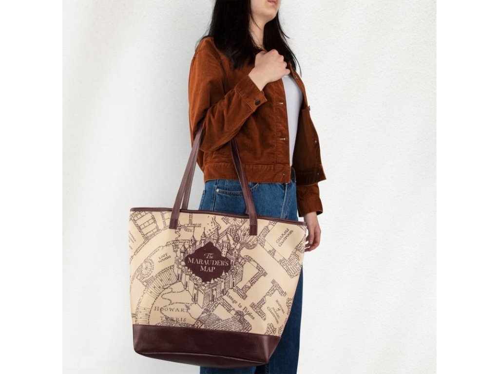 Prostorná taška s pobertovým plánkem a malou připínací kapsičkou na drobnosti musí mít všechny správné fanynky filmů a příběhů o Harrym Potterovi! Taška má velkou hlavní kapsu s menší vnitřní kapsičkou například na klíče, peněženku nebo mobil. Vnější malá kapsička se zapínáním na magnet se hodí vždy, když potřebuje mít důležité věci hned po ruce!