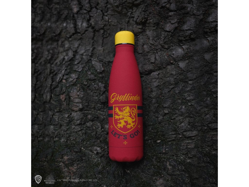 Nerezová láhev na vodu v barvách koleje Nebelvír z čarodějnické školy čar a kouzel v Bradavicích nenechá žádného fanouška Harry Pottera o žízni. Láhev udrží váš nápoj studený či teplý až 15 hodin. Láhev není vhodná do mikrovlnky ani do myčky nádobí.