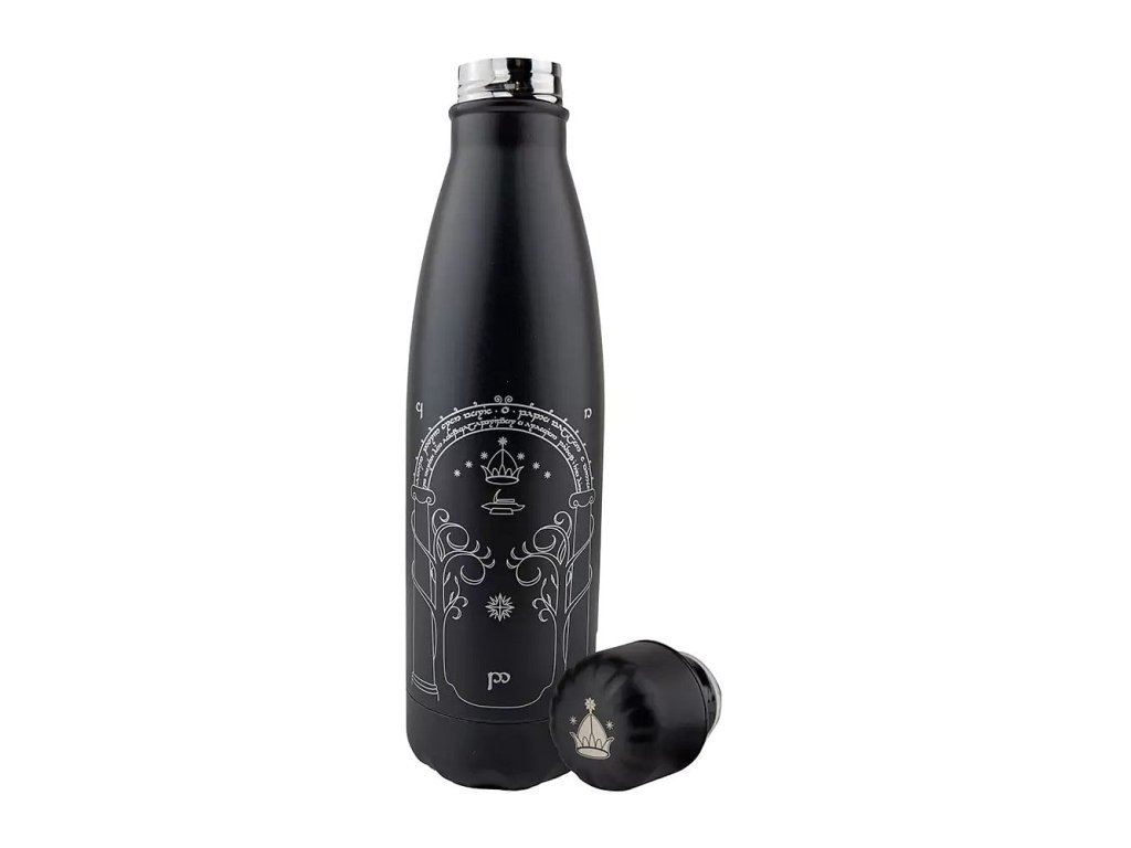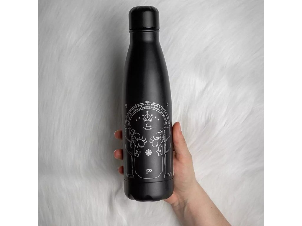 Osvěžte se spolu s krásnou nerezovou lahví, kterou zdobí nápis ze Západní brány Morie, dávného trpasličího sídla z Pána prstenů! Láhev udrží váš nápoj studený či teplý až 15 hodin. Láhev není vhodná do mikrovlnky ani do myčky nádobí.