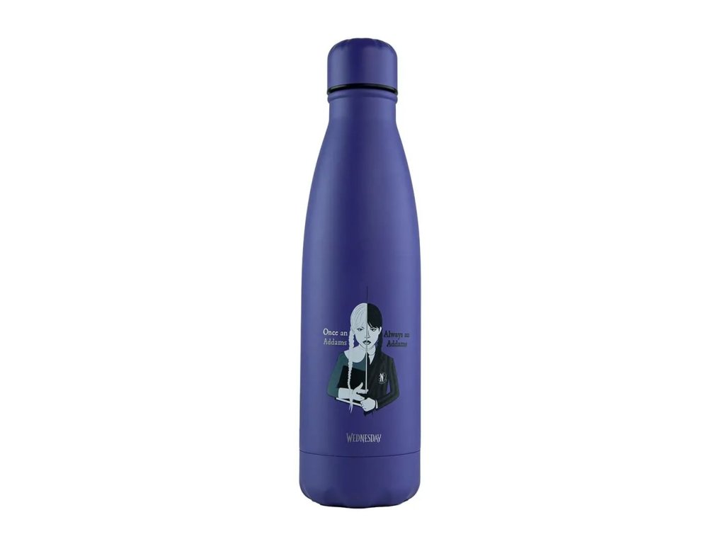 Nerezová láhev s vodotěsným uzávěrem a Wednesday Addamsovou hrající na cello bude hezkým dárkem i praktickým společníkem do školy, do práce nebo na cesty. Láhev udrží váš nápoj studený či teplý až 15 hodin.