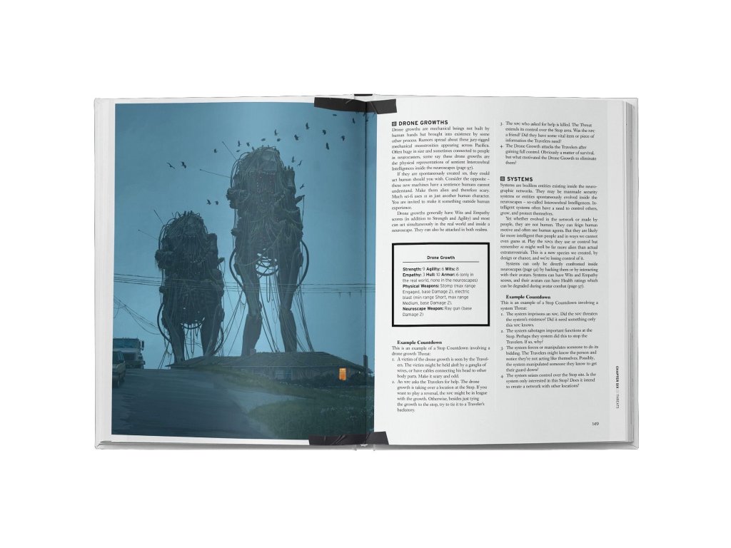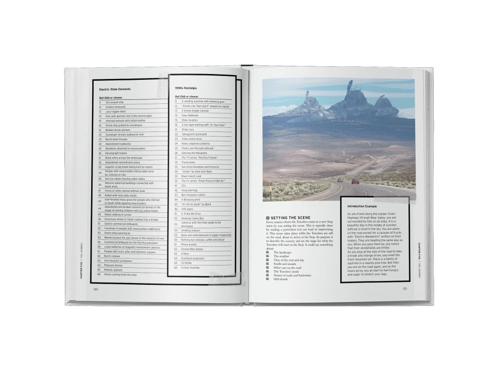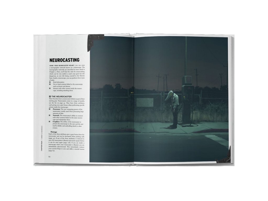 When did it all start? I can’t really remember. It started like any recreational activity, I guess. Like TV. Sometimes they watched TV and sometimes they would sit there wearing their neurocasters. I didn’t care. It was after the big update of 1996 that things got weird. Mode Six. Vydej se na cestu podivnou Amerikou v alternativním roce 1997. Západní pobřeží je poseté vraky gigantických bitevních dronů nahromaděné spolu s odpadky high-tech konzumní společnosti v úpadku. Příručka je v angličtině. Hra na hrdiny The Electric State není primárně o cíli nějakého dobrodružství, ale o samotném průběhu – o tom, co postavy ve skupině cestovatelů na své cestě prožívají a jak je to mění. Klade se důraz na průzkum a ať už jde o opuštěný venkov nebo velkoměsta, v této bizarní alternativní historii je rozhodně co objevovat. Kniha také obsahuje samostatnou mapu oblasti nazvané Pacifica. Ta zahrnuje prostředí mezi San Franciscem a Los Angeles na hranici s výlučnou zónou Blackweltu. Herní styl The Electric State RPG Core Rulebook je zaměřený na zjišťování toho, kdo jsi v tomto novém uspořádání světa a kdo jsou tví přátelé. Během dobrodružství si budeš nejednou klást otázku: Co jsi ochotný udělat, když se kolem tebe hroutí svět? Toto stolní RPG používá osvědčený herní systém Year Zero Engine, známý z jiných oceňovaných her na hrdiny od Free League jako je Mutant: Year Zero, Tales From the Loop, ALIEN a Blade Runner. V principu jde o hod několika šestistěnnými kostkami, kde pro úspěch akce stačí, když padne alespoň jedna šestka. Počet použitých kostek závisí na hodnotě tvého hlavního atributu, jimiž je Síla, Obratnost, Důvtip, Empatie, Zdraví a Vybavení. Příručka je vizuálně založena na narativní umělecké knize The Electric State. Jedná se o plnobarevný svazek v pevné vazbě s desítkami ilustrací od uznávaného vizuálního umělce Simona Stålenhaga.