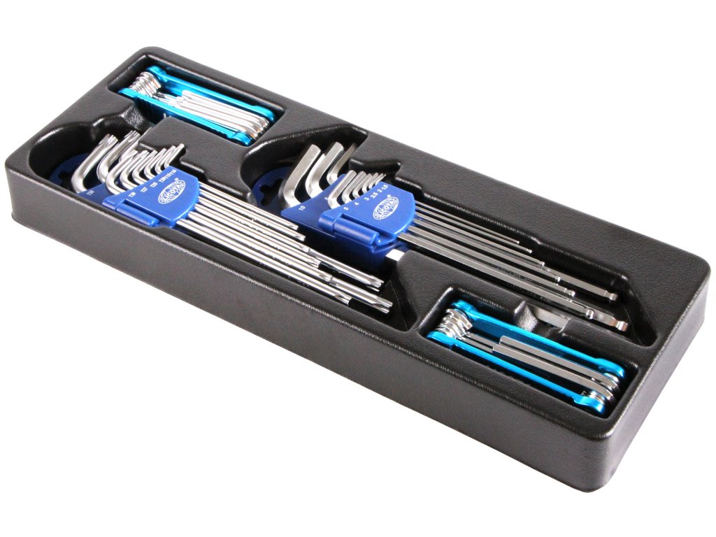 Plastová výplň profesionálních Torx a Imbusových klíčů do dílenských vozíků nebo pracovních stolů (ponků).