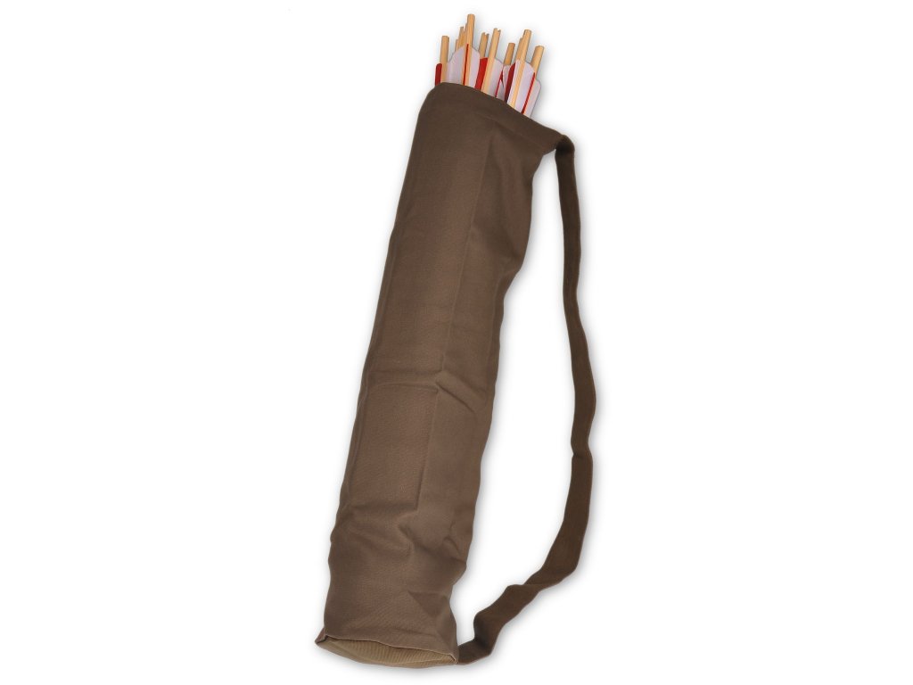 Rozměrný toulec z pevného plátna, ideální na larpové šípy. Výška toulce je cca 60 cm, průměr cca 20 cm. Toulec je opatřen popruhem pro zavěšení přes rameno. Více o použitém materiálu se dočtete zde: popis materiálů.