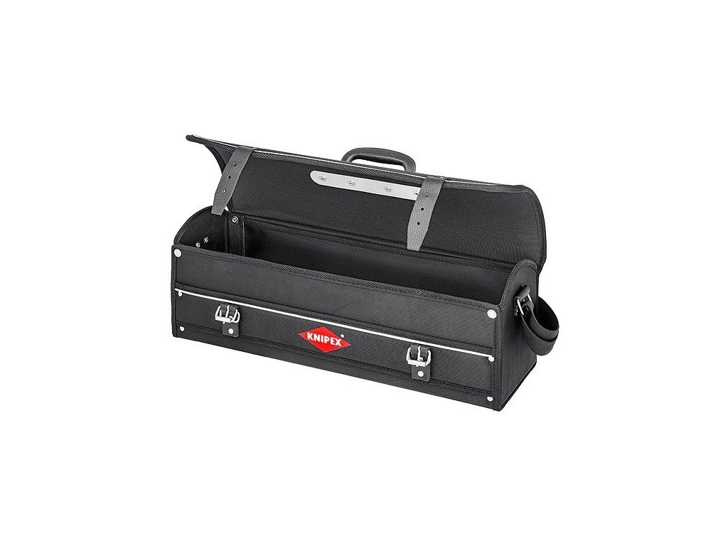 Z odolné polyesterové tkaniny. Pro nářadí do délky cca 450 mm. S přihrádkou na dokumenty na zadní straně. S držadlem pro nošení a nastavitelným popruhem. Kožený zapínací řemen. Rozměry, vnější (Š x V x H): 520 x 200 x 230 mm- rozměry, vnitřní (Š x V x H): 490 x 140 x 155 mm.