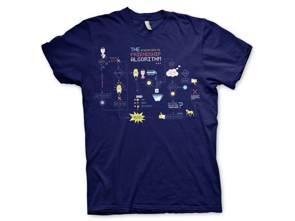 Tričko v barvě námořnické modři na motivy oblíbeného seriálu Big Bang Theory - The Friendship Minions Algorithm. Oficiálně licencovaný produkt.