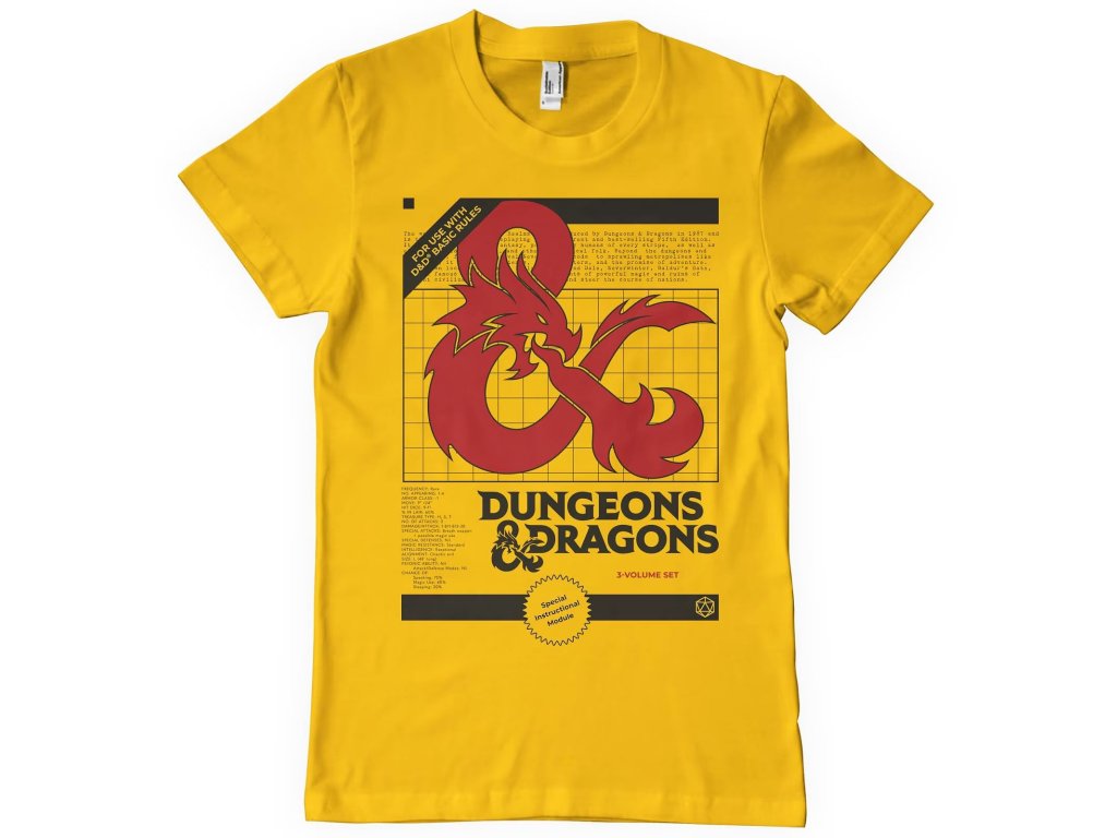 Hezké žluté tričko s logem světově populární hry na hrdiny Dungeons and Dragons se hodí na vaši příští herní seanci i každodenní nošení! Krásné tričko pro hrdé hráče.