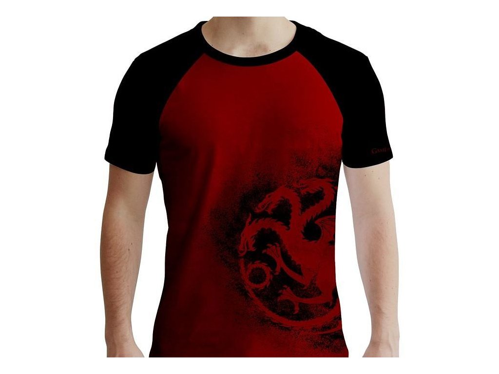 Slušivé pánské bavlněné tričko v červené a černé barvě, které zdobí rodový znak Targaryenů z oblíbeného fantasy seriálu Game of Thrones - Hra o trůny.