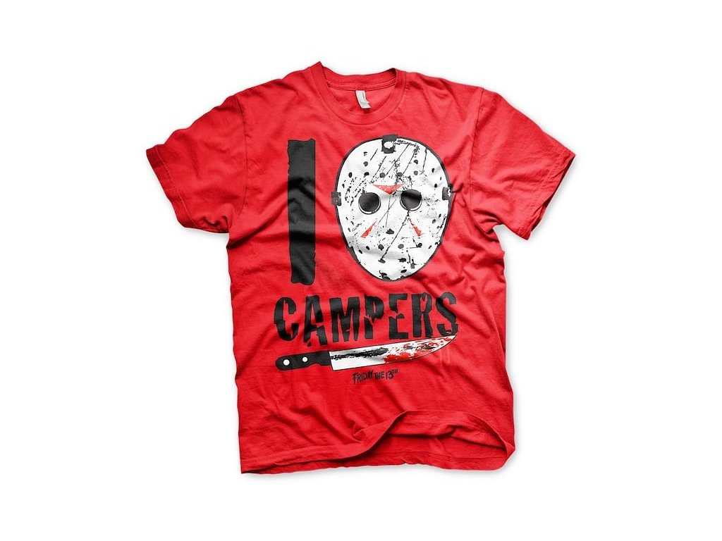 Jason Voorhees se opět mstí všem, co jej probudili ze smrtelného spánku. Vylaď svůj styl s tričkem z kultovní hororové série Pátek třináctého (Friday the 13th)! Z přední strany tričko zdobí kvalitní licencovaný potisk I Jason Campers. Ideální pro milovníky kultovní hororové série, ať už se vydáš na filmový večer nebo jen do města!