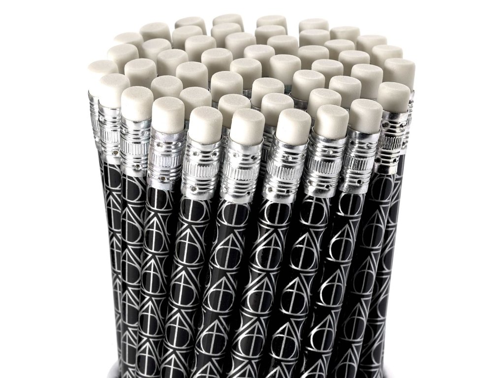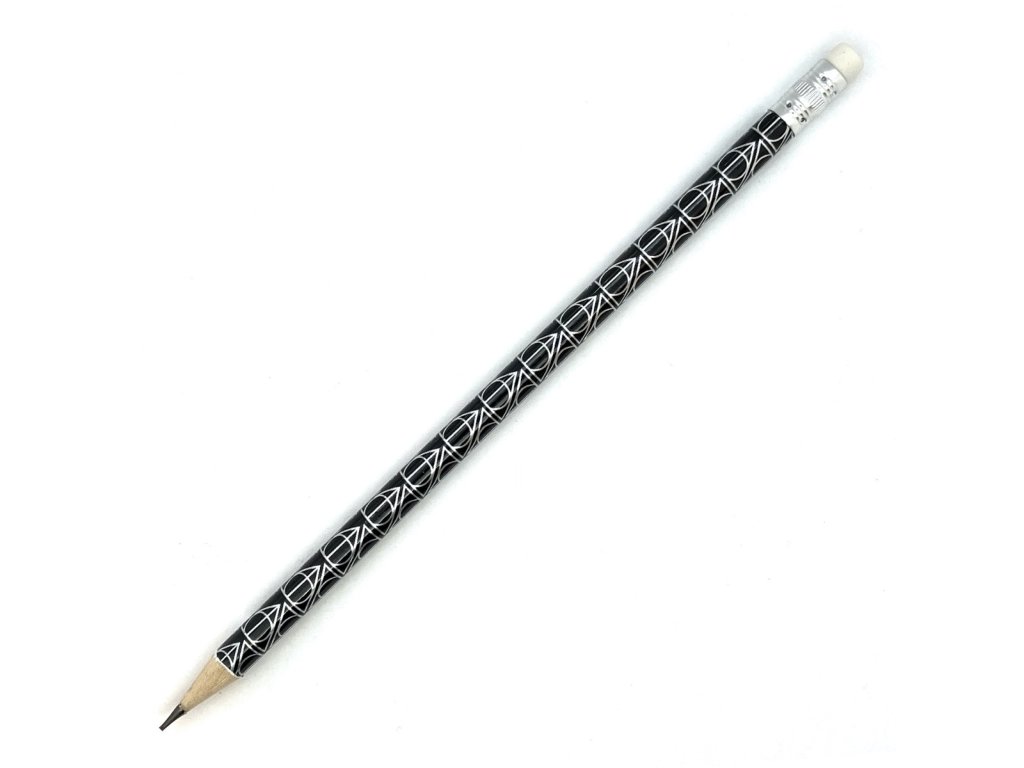 Tužka se symbolem Relikvií smrti pro malé i velké čaroděje a fanoušky knih a filmů o Harry Potterovi! Součástí tužky je guma.