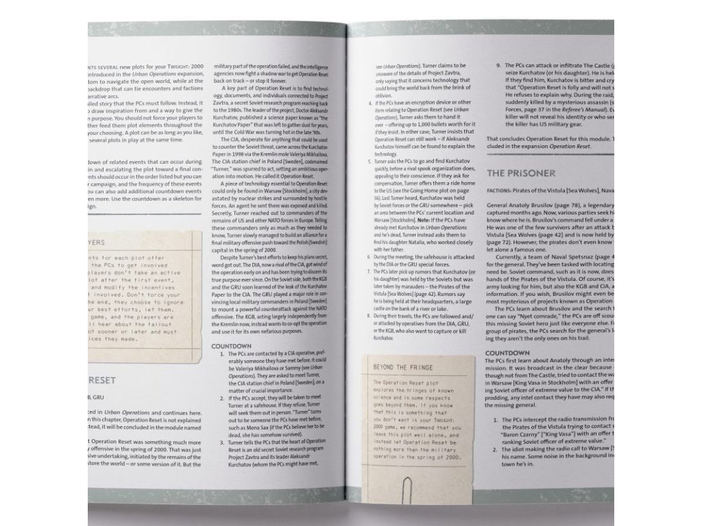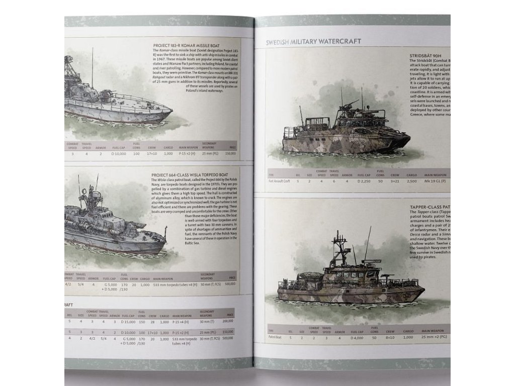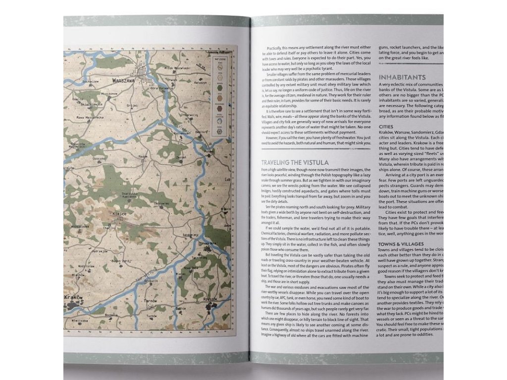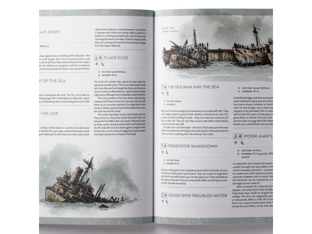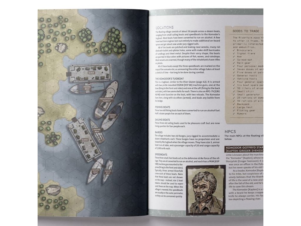 V krabici Hostile Waters najdeš vše potřebné pro hraní v námořním prostředí ve hře na hrdiny z postapokalyptického prostředí třetí světové války Twilight: 2000, včetně 26 karet setkání či 16 modulárních námořních bitevních map. Sada je v angličtině. I always wanted to go on a boat, you know, before the war. When we reached the Vistula, Top said, “Now’s your chance, kid.” Two-Fer said he did some boating with his brother out on the Gulf, and I guess he meant Mexico because I don’t think he ever served in the desert. I kid you not, an hour later we were being chased by pirates just like in the show. Bullets whizzing above my head. Spray of water in my face. Worst part is – I’m getting used to this life. Hostile Waters for the new edition of RPG classic TWILIGHT: 2000 is a modular expansion that includes everything you need to play in a marine environment. Hostile Waters is loosely based on Pirates of the Vistula for the first edition of TWILIGHT: 2000 but designed to be used for any waterways. This boxed set includes new combat and travel rules for marine environments, military watercraft large and small, new factions for the PCs to tangle with, new plots to unravel, and new scenario sites to explore – including the USS Maine Ohio-class nuclear submarine. It also describes the two sample waterways the Vistula river and the Göta Canal. Contents of the boxed set: 104-page full-color book stuffed with new rules and gaming material. 26 new encounter cards, for use on rivers or lakes. 16 modular battle maps for marine environments. Six scenario site battle maps. Battle map tokens for boats and ships of various sizes. A huge double-sided full-color travel map for northern Poland and southern Sweden, connecting the maps in the core RPG set, format 864x558mm.