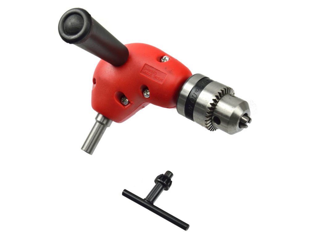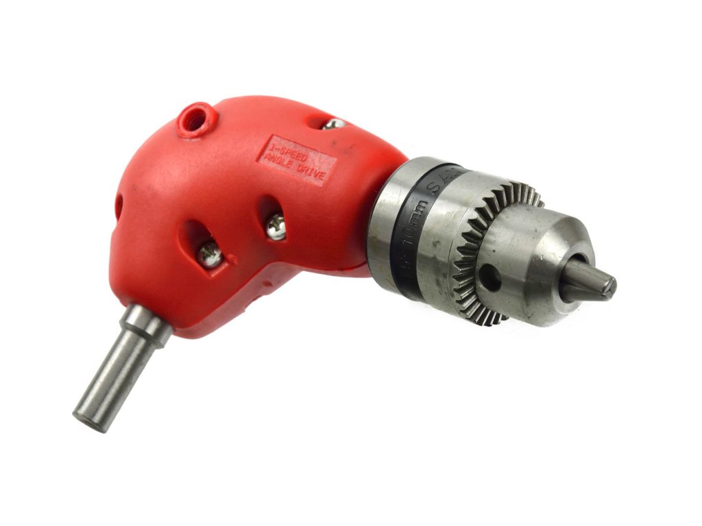 Praktický úhlový adaptér (90°) pro vrtačky a AKU šroubováky s možností upnutí vrtáků 1,5 - 10 mm.