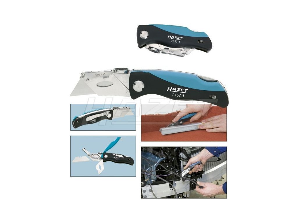 Kvalitní skládací nůž HAZET, německá výroba, rychlá výměna čepele, včetně 5 náhradních čepelí.