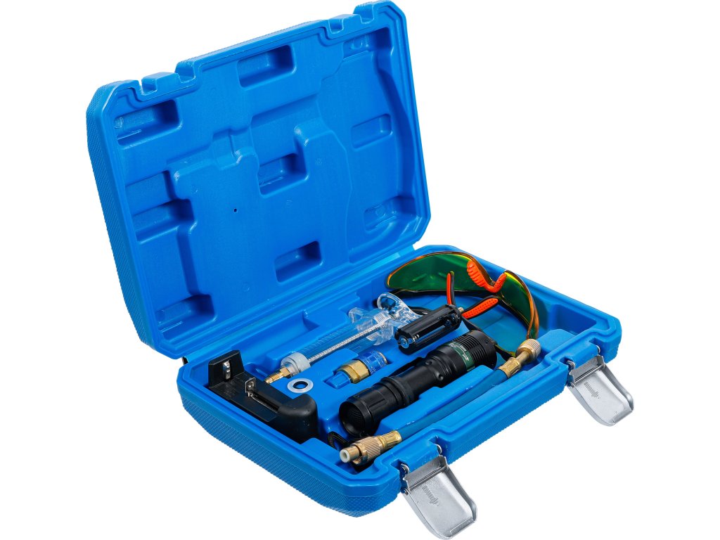 UV lampa, nabíječka, akumulátor, ochranné brýle. Kompatibilní se všemi běžně prodávanými přísadami pro vyhledání úniku.