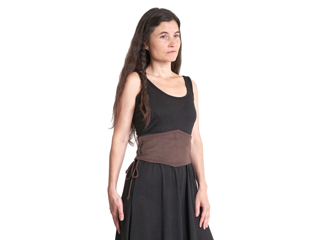 Nechte vyniknout své přednosti pomocí úzkého korzetu Tauriel, který podtrhne vaši postavu. Nejen že si jej můžete vzít k historickému kostýmu, ale hodí se také k běžnému nošení. Doplní váš outfit, ať už se chystáte do boje, na procházku po lesích nebo jen na cestu do práce k šatům či k sukni a halence. Úzký korzet je ušitý z dyftýnu (100% bavlny) a nabízíme jej ve dvou velikostech. Díky bočnímu šněrování se krásné přizpůsobí každé ženské postavě. Zapínání korzetu je řešeno pomocí čtyř kovových háčků, které jsou elegantně ukryty pod látkou na zadní straně.