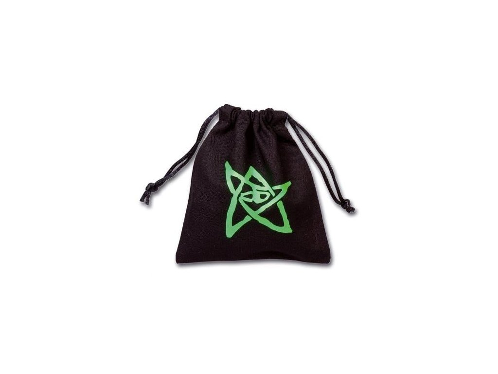 Plátěný stahovací váček na kostky zdobený zeleným znakem Call of Cthulhu (inspirováno legendárním hororovým dílem H. P. Lowecrafta). Rozměry váčku jsou 10 x 13 cm.