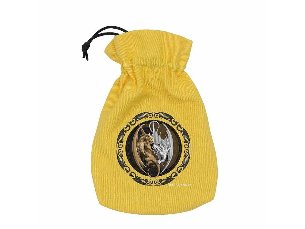 Elegantní váček na kostky s motivem dvou draků od Anne Stokes. Tento stylový doplněk je ideální pro hráče stolních her, kteří chtějí uchovat své kostky v bezpečí a zároveň vyjádřit svou vášeň pro fantasy svět. Vyroben z kvalitního materiálu, který zajišťuje dlouhou životnost a ochranu obsahu