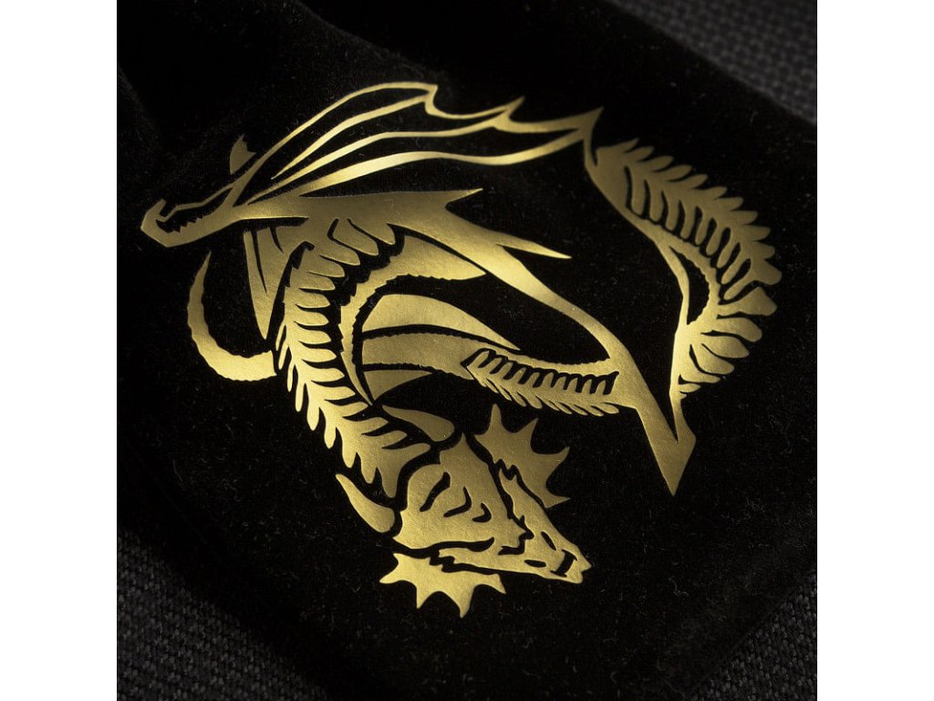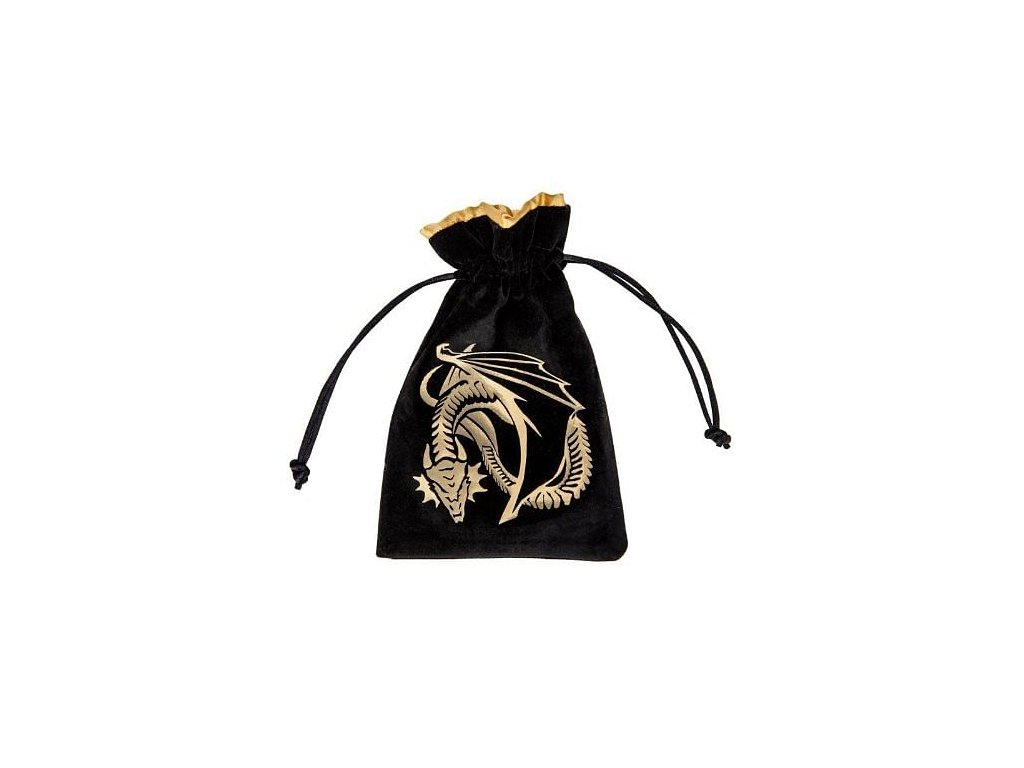 Váček na kostky Dragon Black & golden Velour se zlatým drakem na černém pozadí. Skvělý na kostky nebo jiné drobné herní příslušenství. Uzavírá se stahovací šňůrkou.