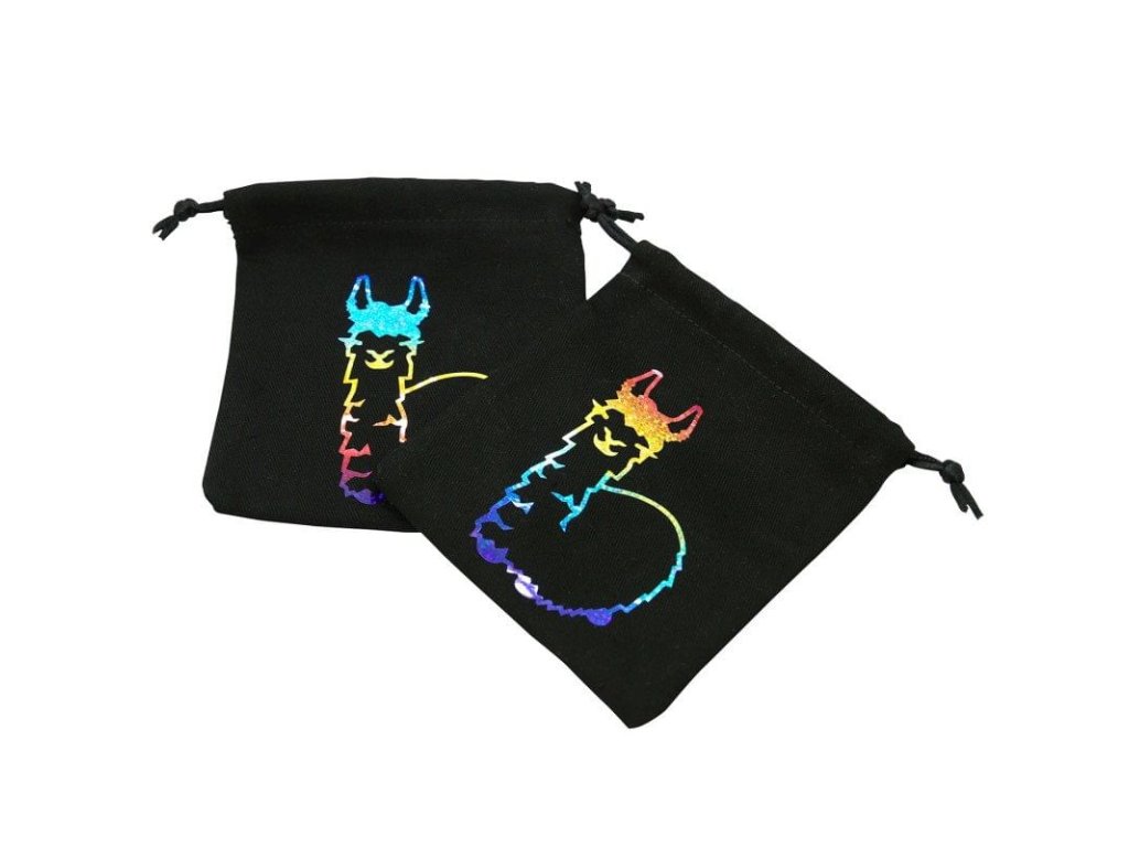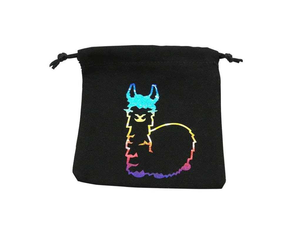 Černý váček se zářící duhovou Llamou je tu jen pro vás a vaše kostky! Každý pytlík má trochu odlišné barevné schéma, což ho dělá jedinečným. Rozměry váčku jsou 11 x 12 x 0,5 cm, stahuje se pomocí tkanice. Tento váček můžete kombinovat se stylovými Llama kostkami.